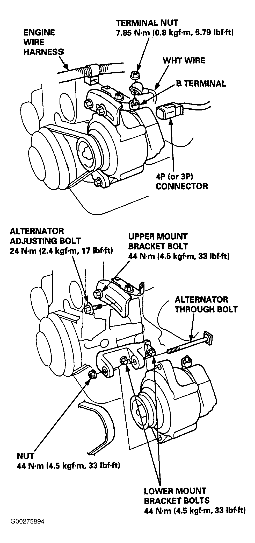 - Disconnect negative battery cable. Disconnect positive battery cable. Disconnect 4P (or 3P) connector. See Fig 1 . Remove terminal nut and White or Black wire from "B" terminal.
