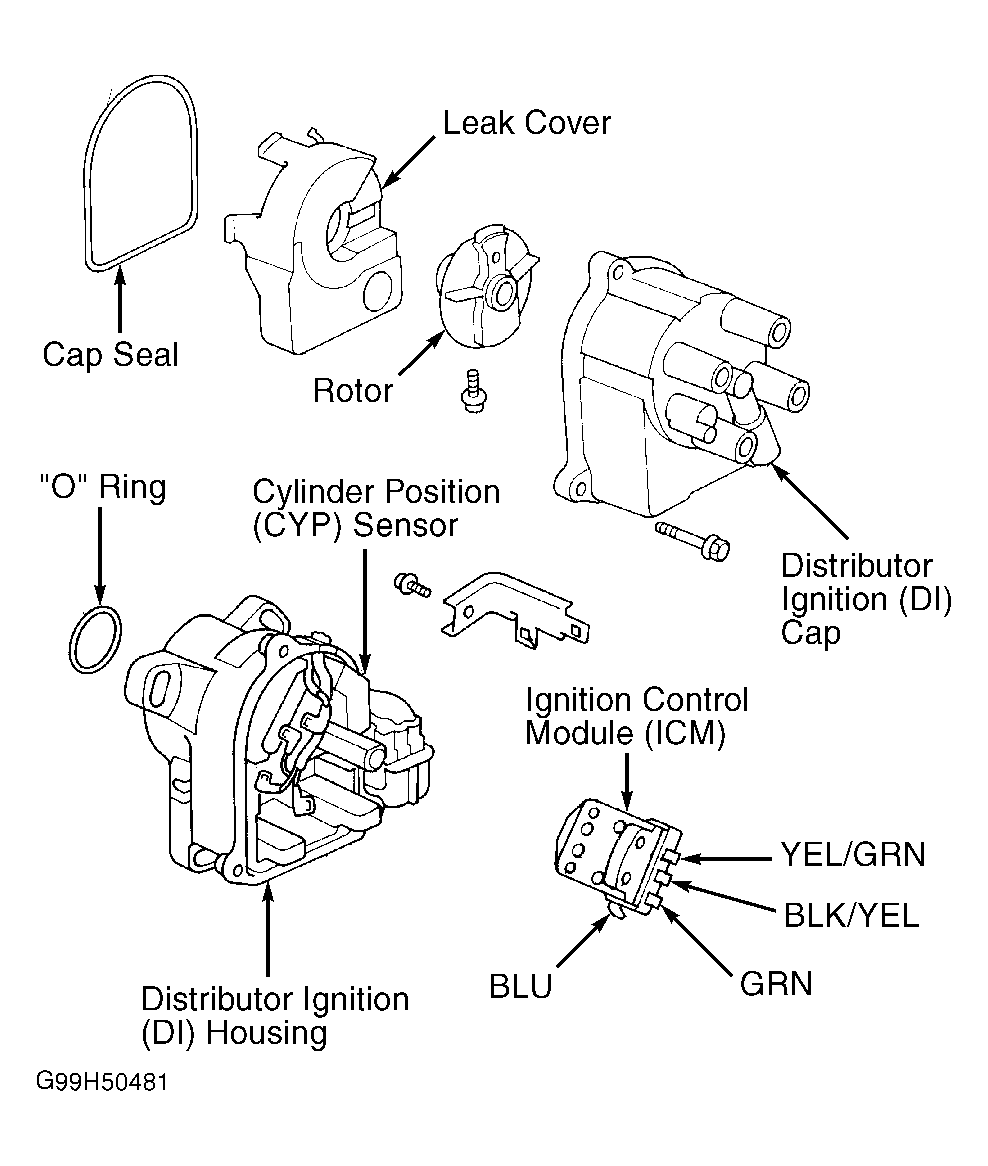 If MIL comes on, check for Diagnostic Trouble Codes (DTCs). See appropriate SELF-DIAGNOSTICS article. Before preforming IGNITION CONTROL MODULE INPUT TEST, ensure ignition, fuel and emissions systems are operating properly. Ignition Control Module (ICM) is located in distributor housing. See Figure-Figure