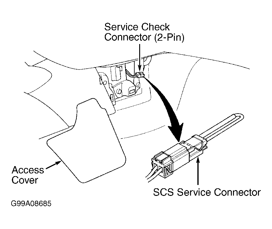 When there is no DTC stored, MIL will stay on if SCS Service Connector is connected to 2-pin service check connector and ignition is on. See Figure