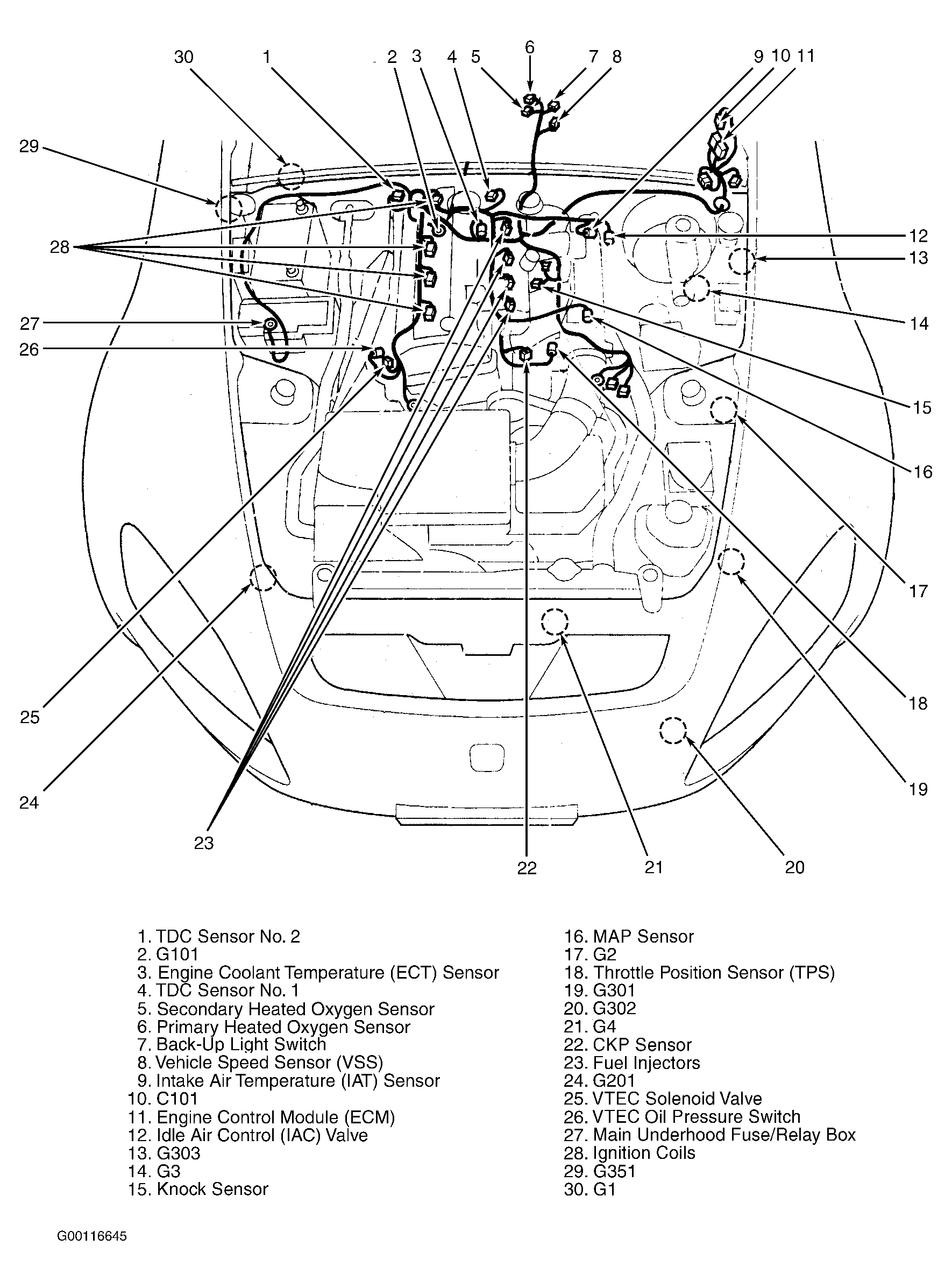 | Engine Control Module (ECM) | Under left side of dash. See Figure . |