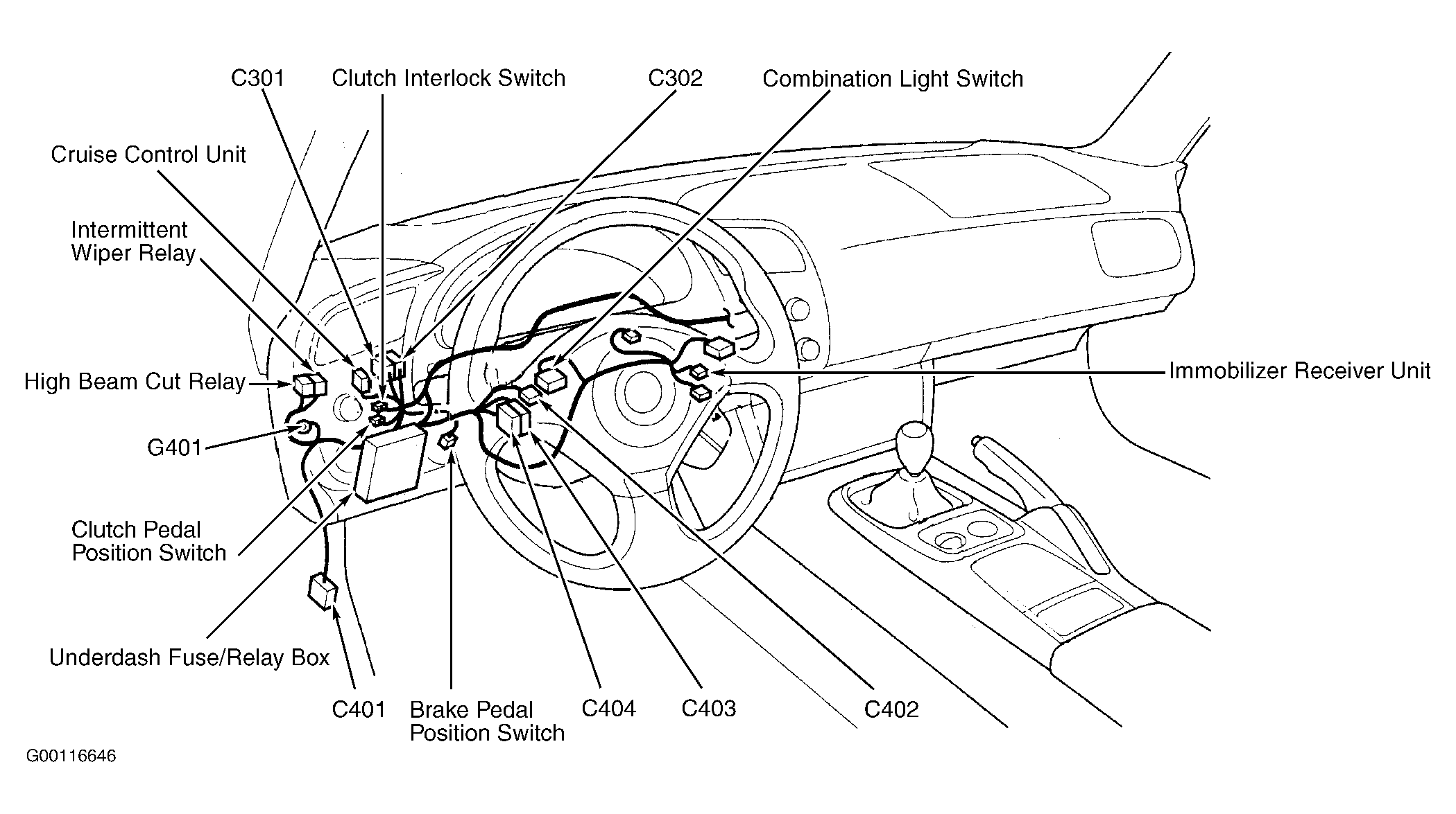 | Cruise Control Unit | Above brake pedal. See Figure . |