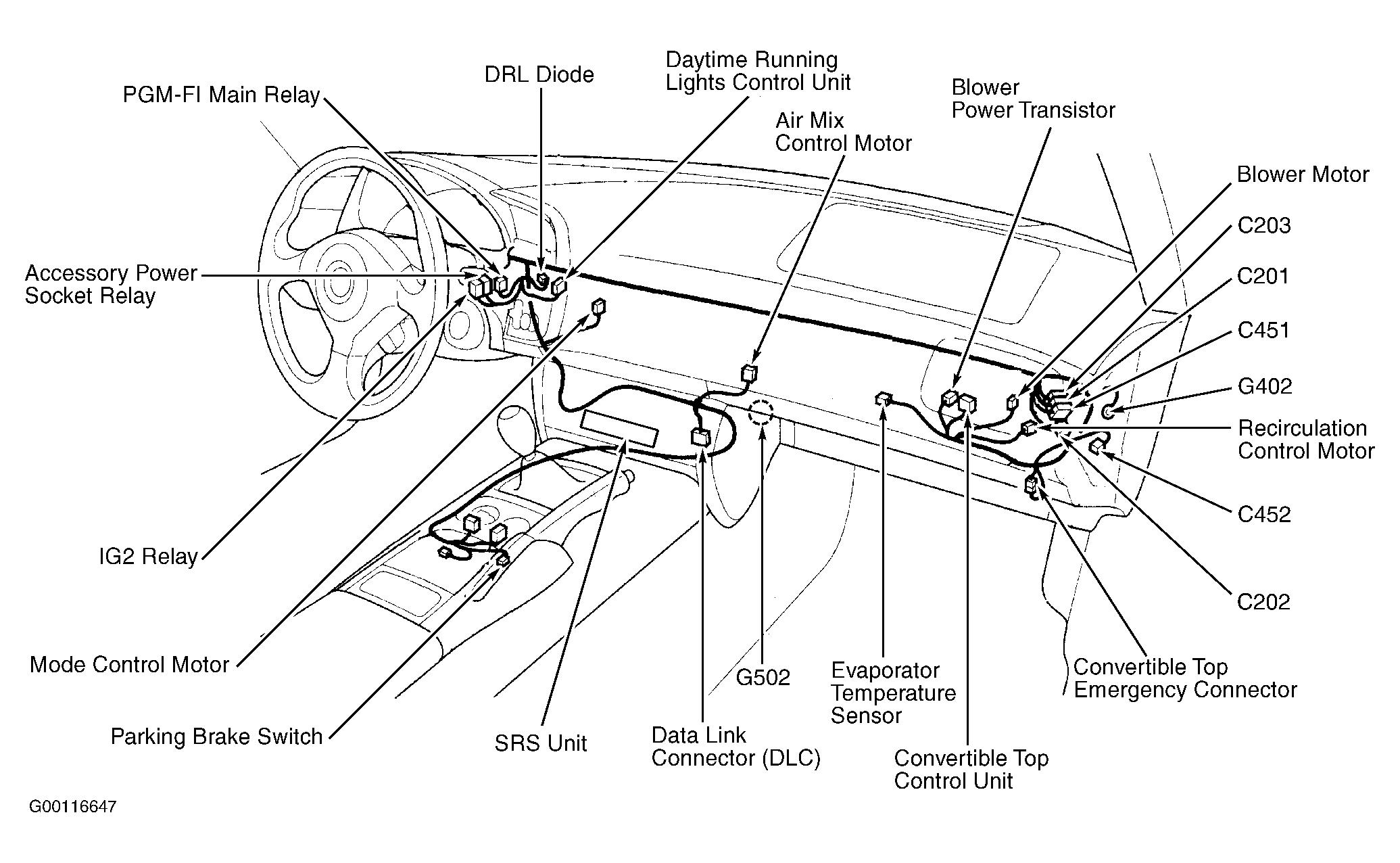 | Daytime Running Lights Control Unit | Behind left side of dash, right of steering column. See Figure . |