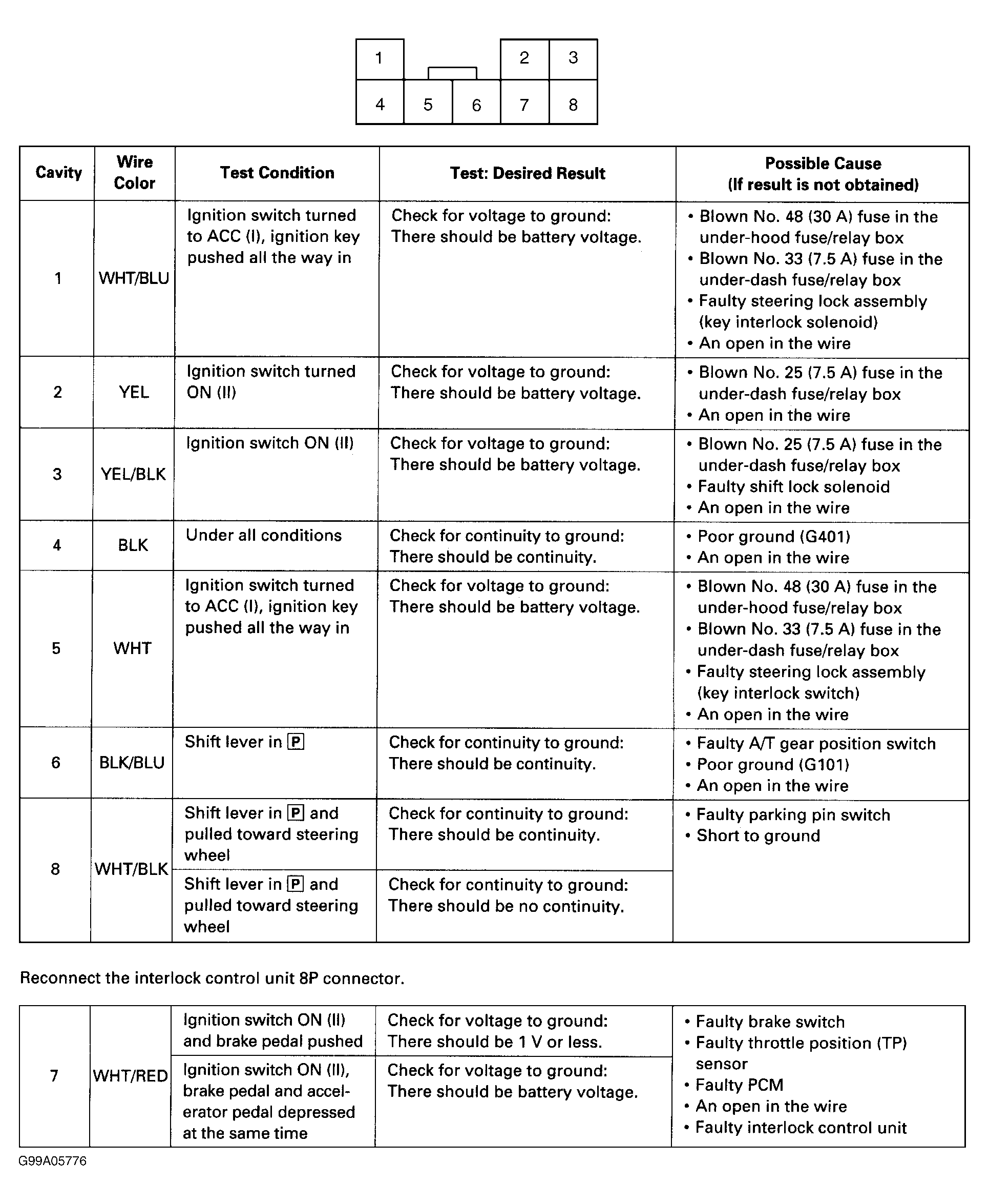 Home >> Honda >> 2001 >> CR-V EX, Standard >> Repair and Diagnosis >> Transmission >> Automatic Trans >> Shift Interlock Systems >> Component Tests >> Interlock Control Unit