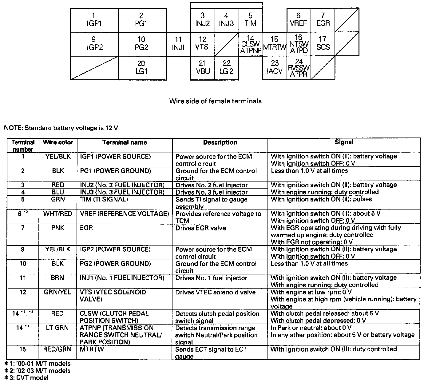 ECM/PCM Inputs And Outputs At Connector B (25P) Part 1:
