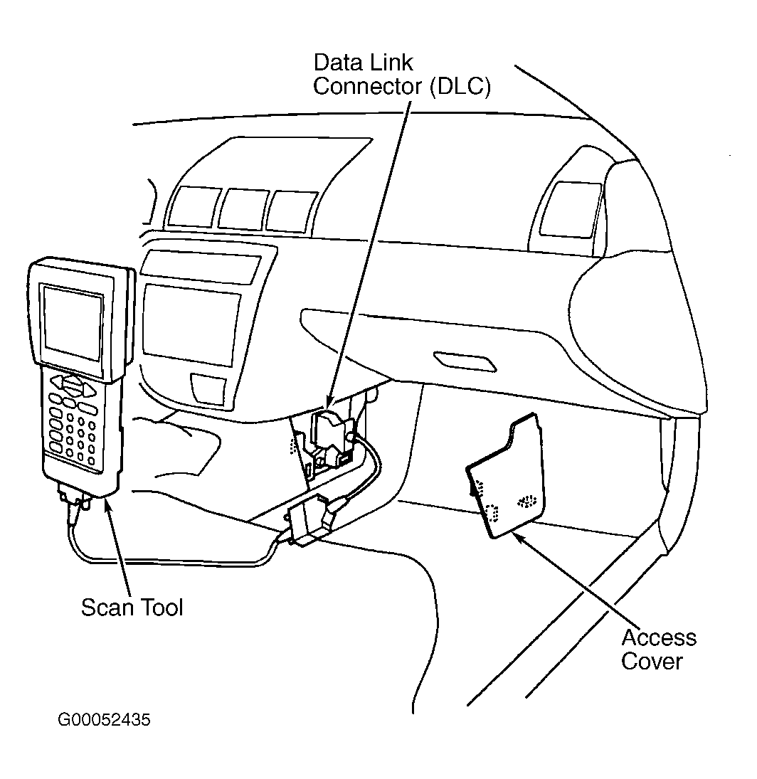 Start engine and check MIL. If MIL stays on, turn ignition off, and connect PGM Tester or OBD-II scan tool to DLC. DLC is located behind right side of center console. See Figure . Turn ignition on. If DTCs are displayed, check for and record freeze frame data, current data and any other PCM data, then proceed to appropriate DTC test. See DIAGNOSTIC TROUBLE CODE IDENTIFICATION . For scan tool operation, refer to manufacturer's instructions. If MIL stays on and no DTCs are displayed, diagnose MIL circuit. See MALFUNCTION INDICATOR LIGHT CIRCUIT DIAGNOSIS . If MIL does not come on, but there is a driveability problem, diagnose concern by symptom. See TROUBLE SHOOTING - NO CODES article.