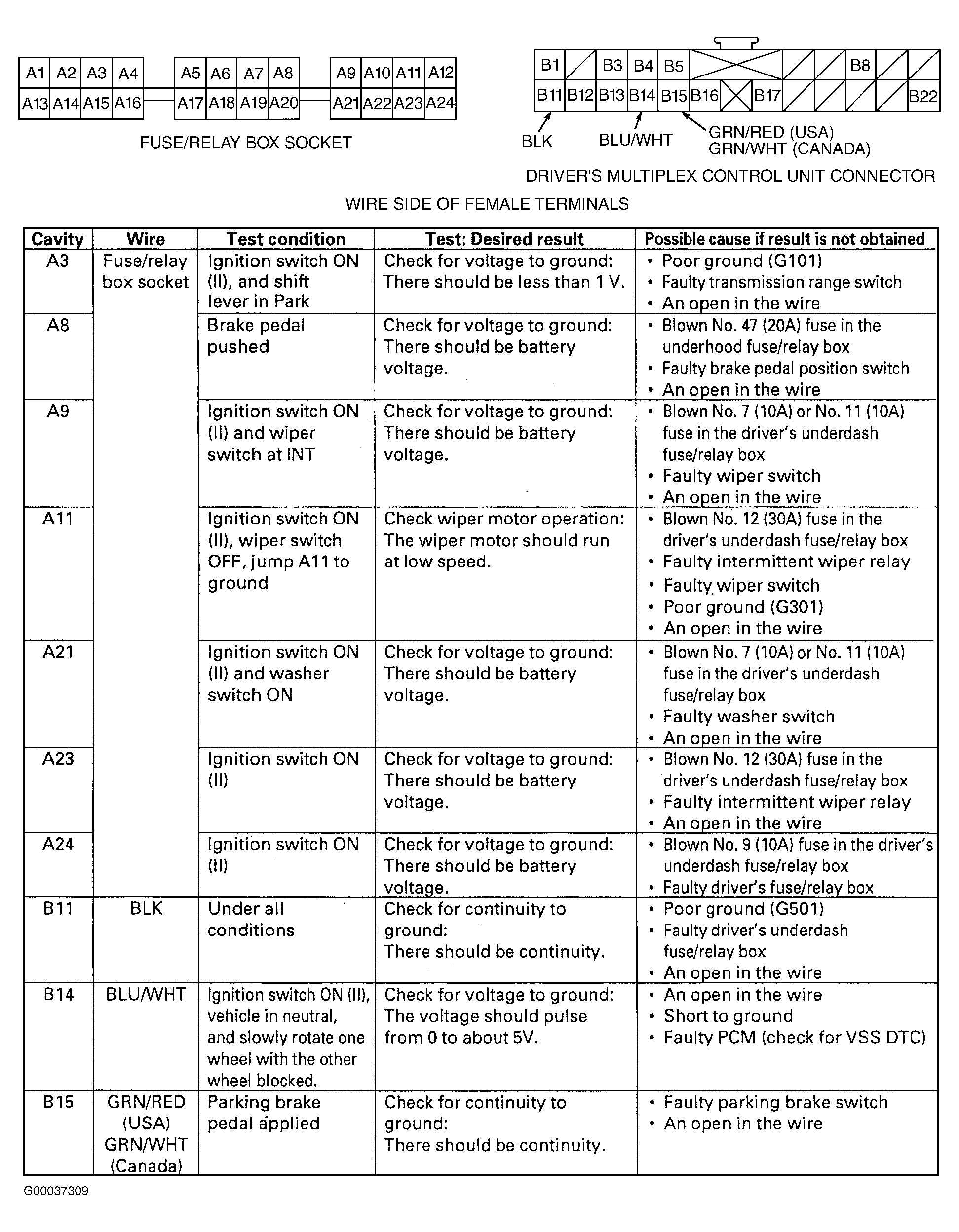 - Using DVOM, perform control unit input test. See Fig 1. If an input test indicates a problem, find and correct cause and retest system. If all input test results are okay, go to PASSENGER'S MULTIPLEX CONTROL UNIT .