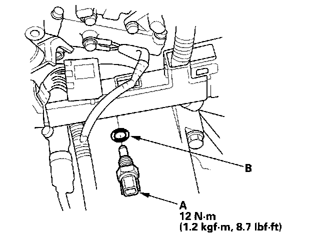 4. Install the sensor in the reverse order of removal with a new O-ring (B).