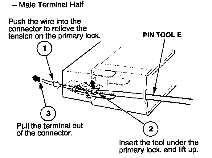 Before you begin, inspect the wire you are about to repair for damage and length. Make sure the wire will be long enough to make a terminal repair without stretching it when you reinstall the terminal in the connector. If the wire is too short, or if access to the connector is too restricted to make a terminal repair, you may need to install a pigtail terminal (a short length of wire with a factory-crimped terminal on it). Refer to HOW TO INSTALL PIGTAIL TERMINALS.