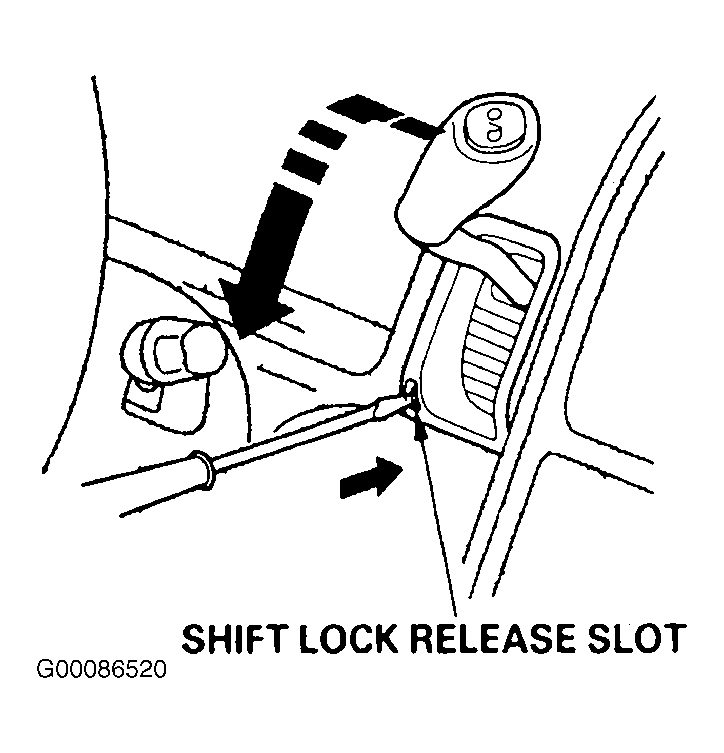 - Shift the gearshift lever into the "P" position while pushing the shift lock release button. See Fig 1.