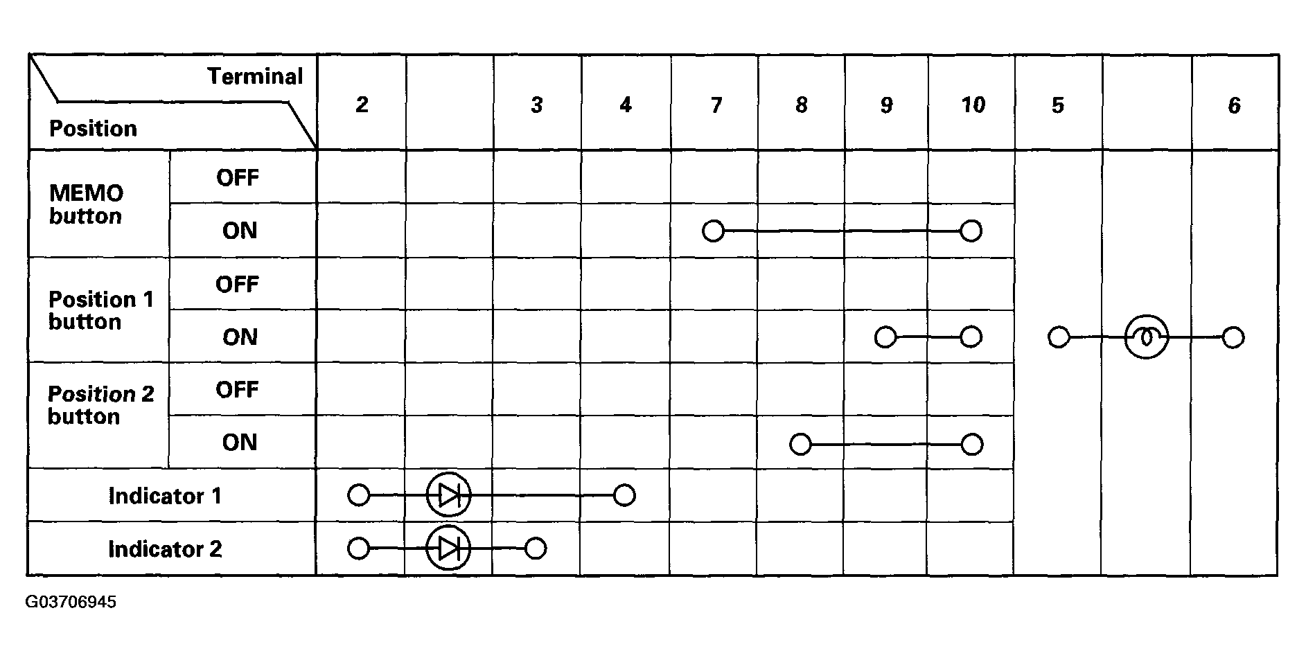 - Check for continuity between the terminals in each switch position according to the table shown in Fig 2.