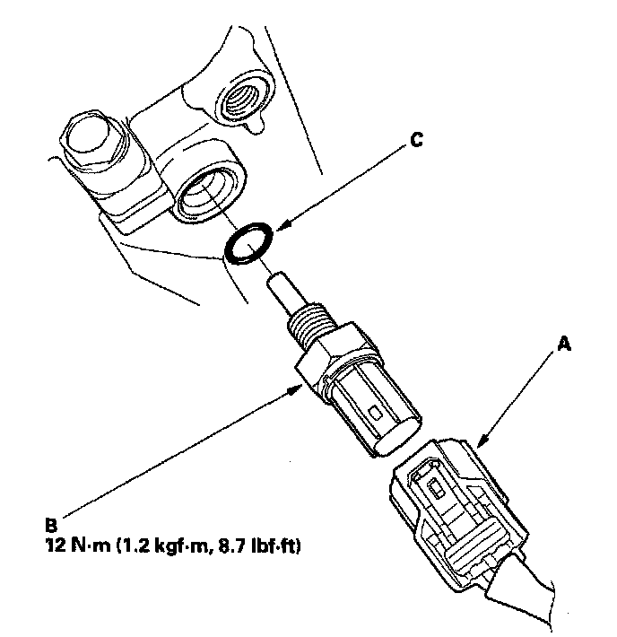 6. Install the sensor in the reverse order of removal with a new O-ring (C), then refill the radiator with engine coolant.