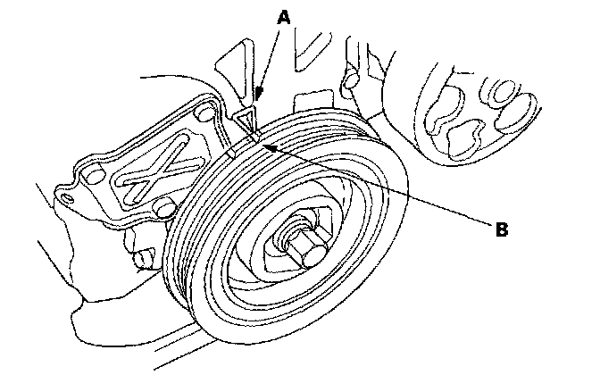 A/T: 8° ± 2° BTDC (RED mark (B)) at idle in Park or Neutral