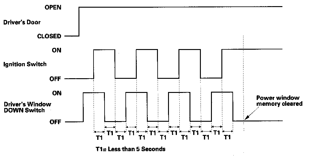 If the window still does not work in AUTO, repeat the procedure several times, paying close attention to the 5 second time limit between steps. If it still does not work, go to B-CAN System Diagnosis Test Mode A. Troubleshooting - B-CAN System Diagnosis Test Mode A