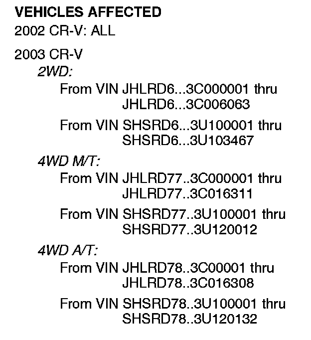 See VEHICLES AFFECTED