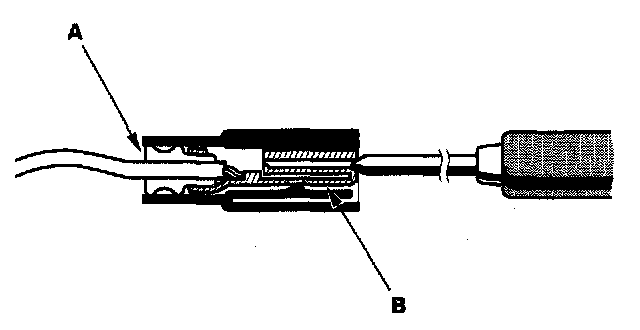 3. If you cannot get to the wire side of the connector or the wire side is sealed (A), disconnect the connector and probe the terminals (B) from the terminal side. Do not force the probe into the connector.