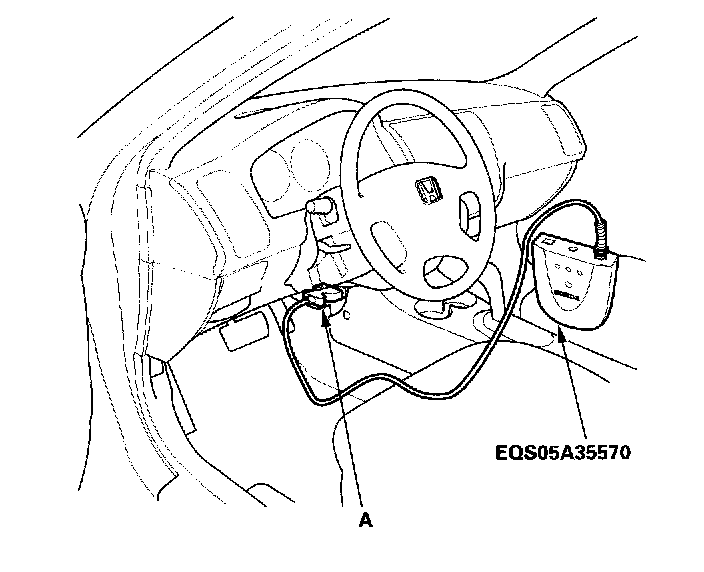 2. Connect the HIM to the DLC (A) located under the driver's side of dashboard.