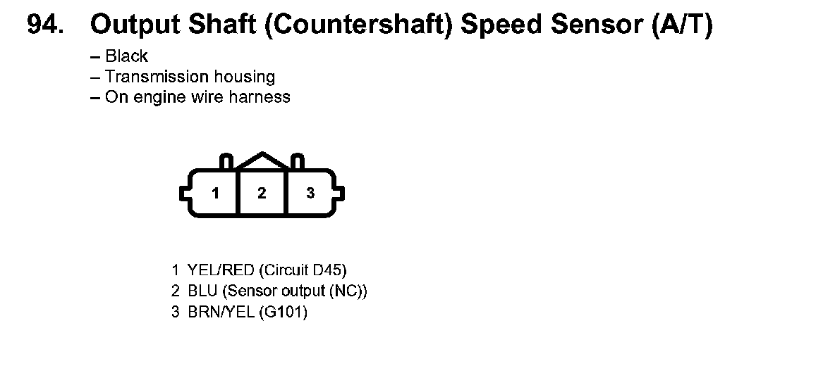 94. Output Shaft (Countershaft) Speed Sensor (A/T):