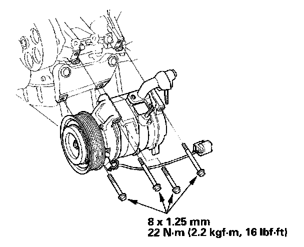 12. Install the compressor in the reverse order of removal, and note these items: