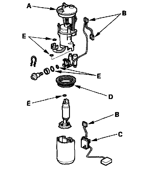 4. Install the parts in the reverse order of removal with a new base gasket ID) and new O-rings (E). When installing the fuel tank unit, align the marks on the unit and the fuel tank.