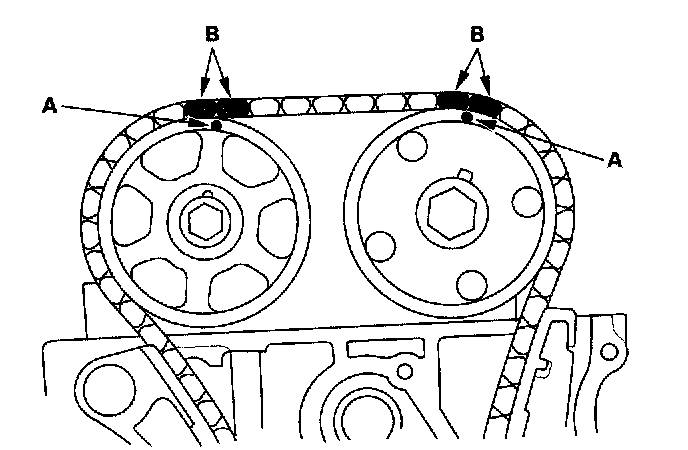 Caution: Incorrect removal or installation of the timing belt can result in damage to internal engine components.For complete Timing Chain Removal and Installation information, please refer to Timing Chain; Service and Repair.