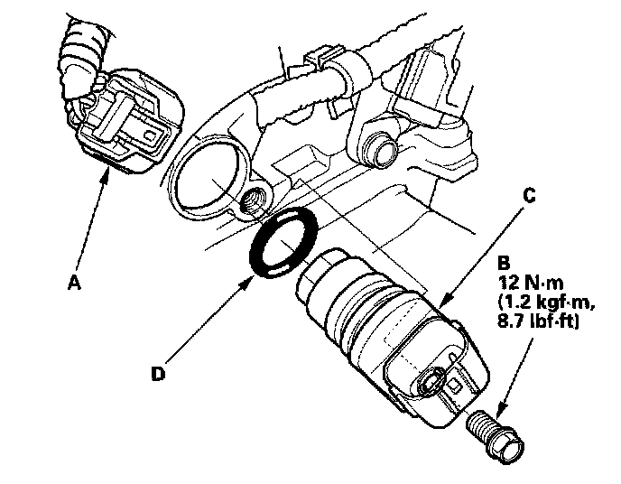 5. Install the sensor in the reverse order of removal with a new O-ring (D).