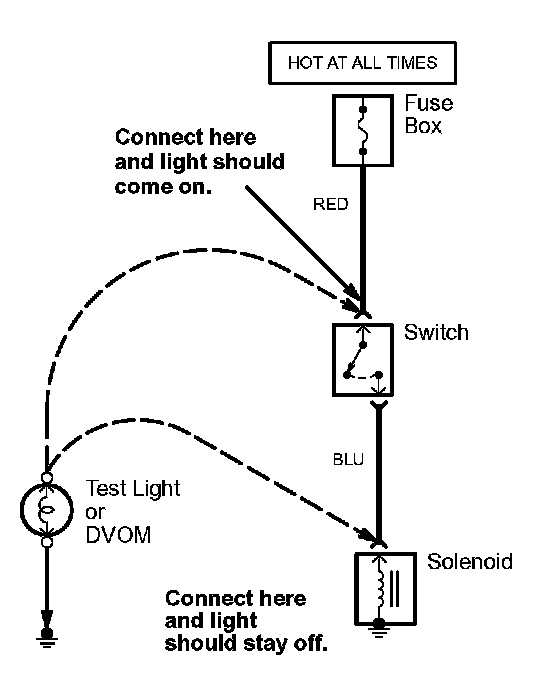 2. Connect the other lead of the test light or DVOM to the point you want to check.