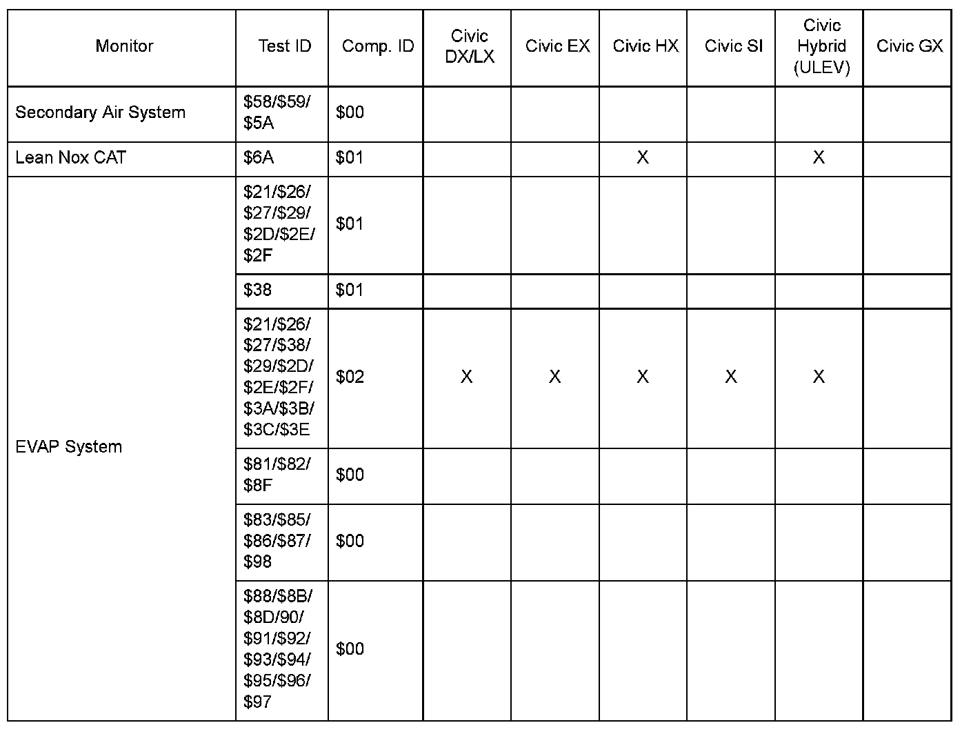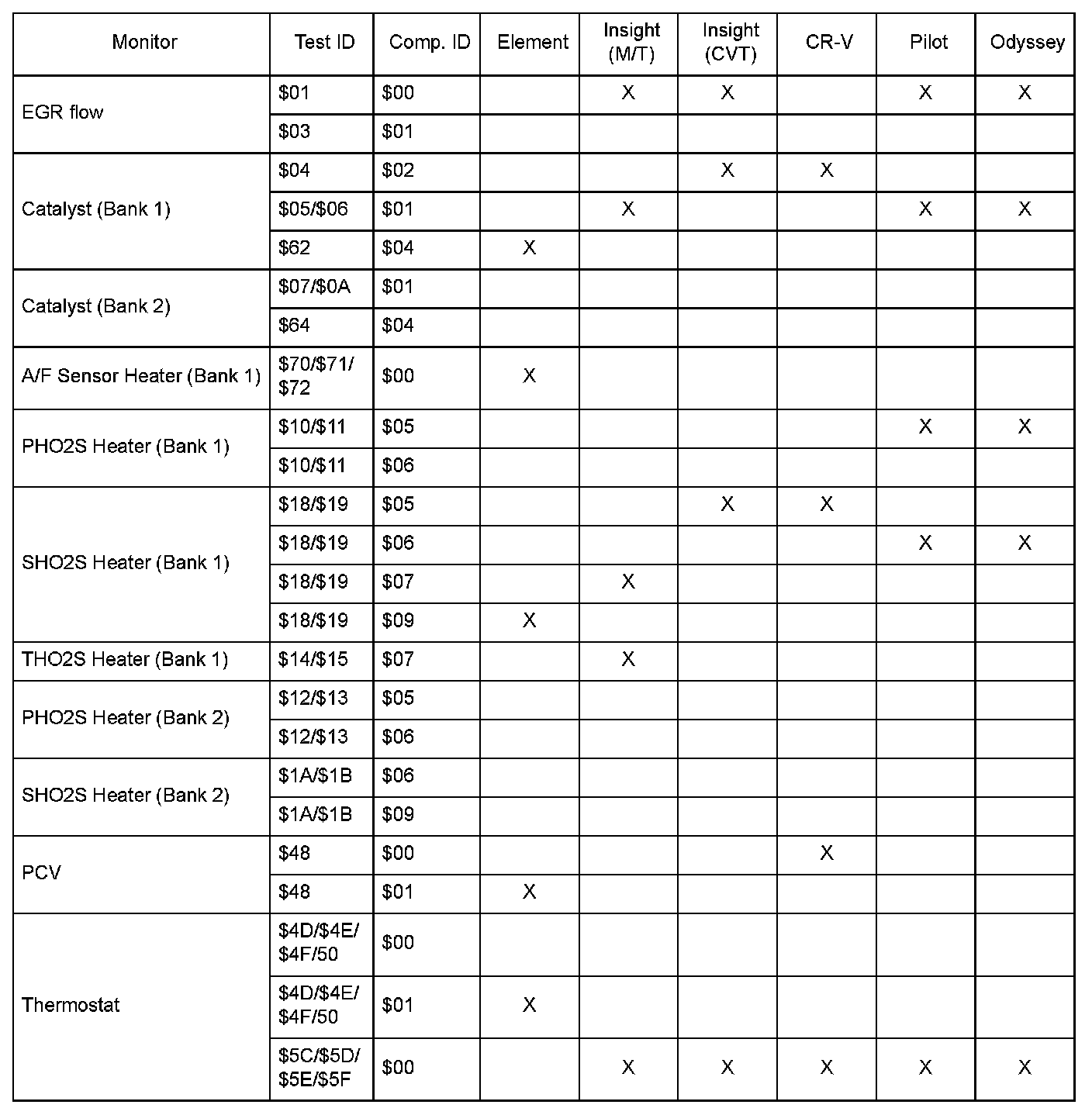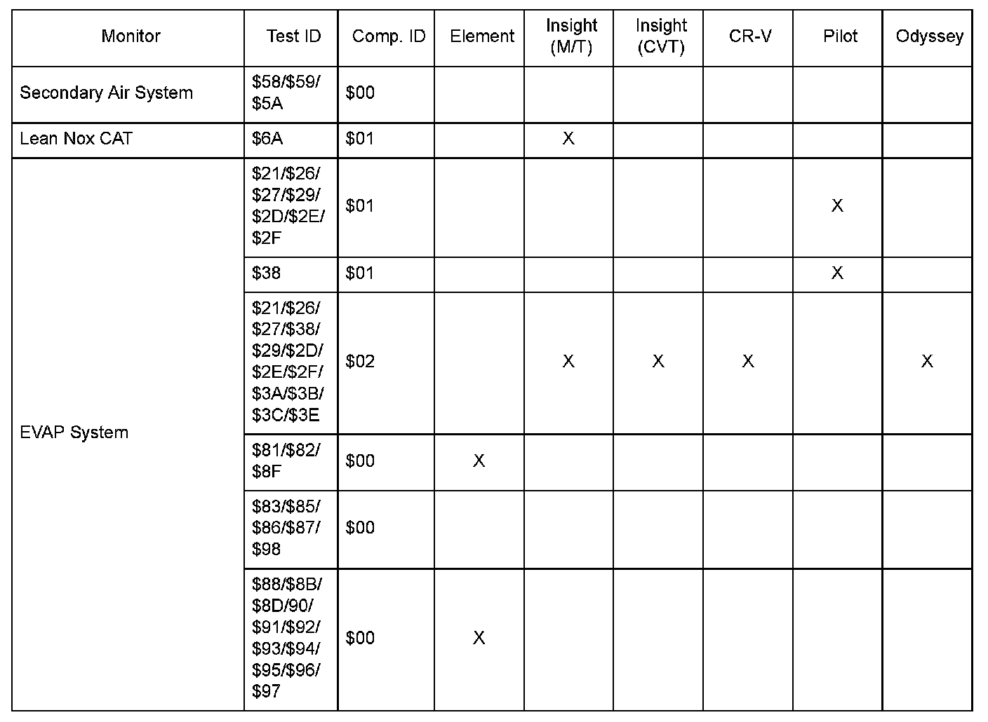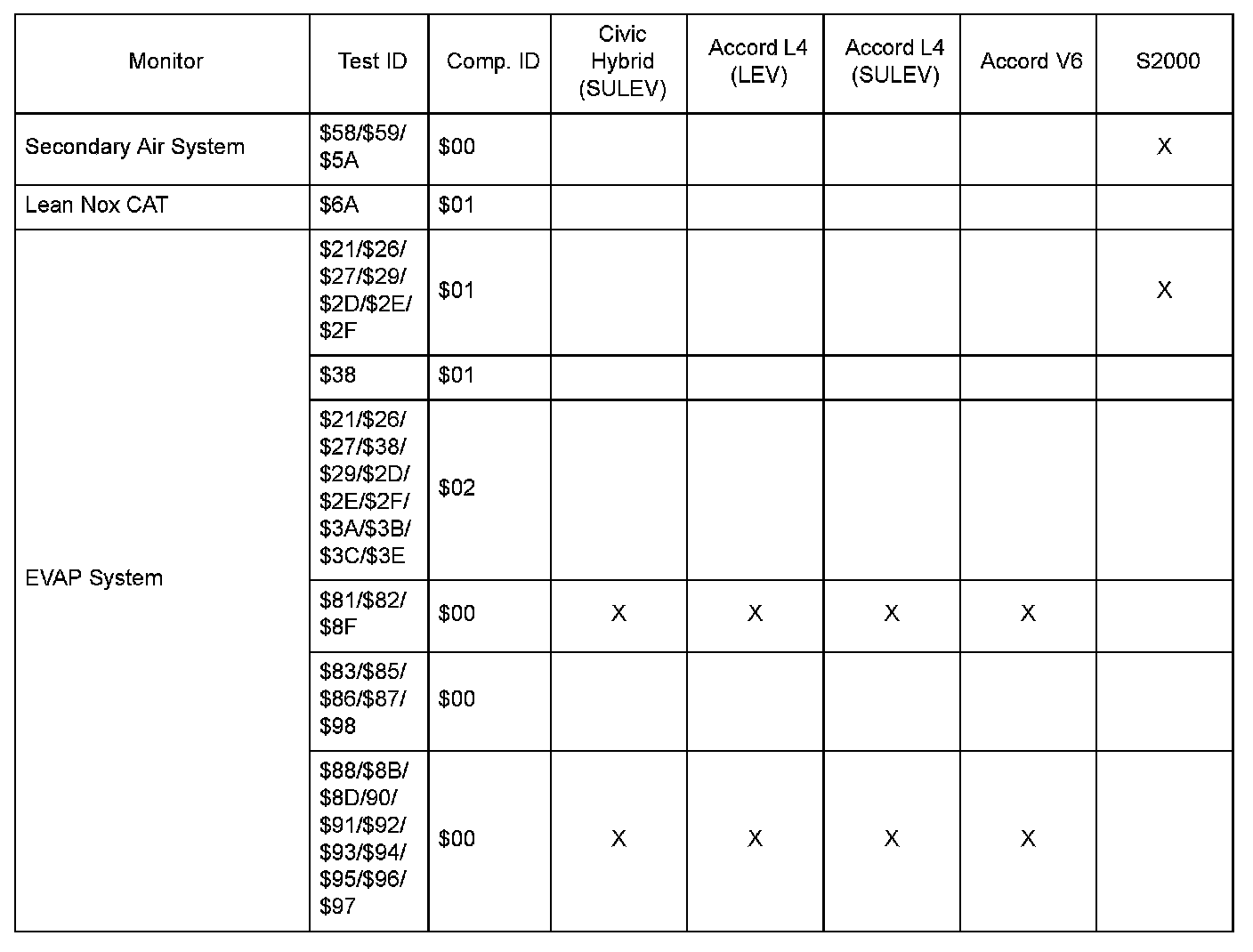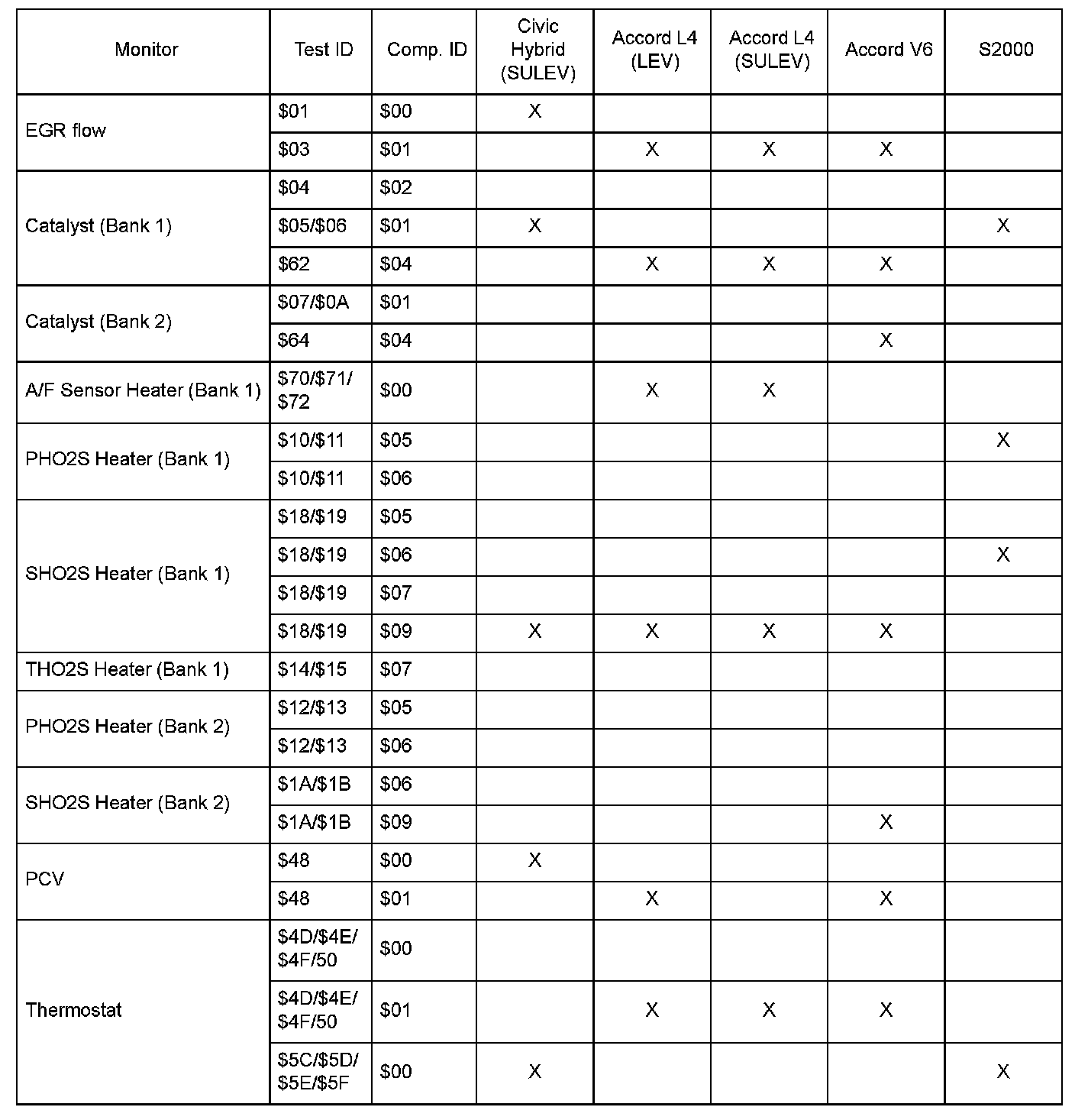 SAE J1979 Mode $06 Test Information: All 2003 Hondas