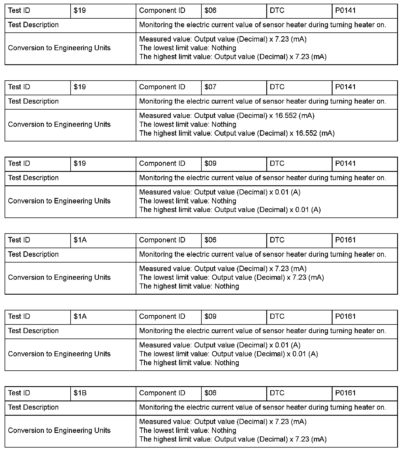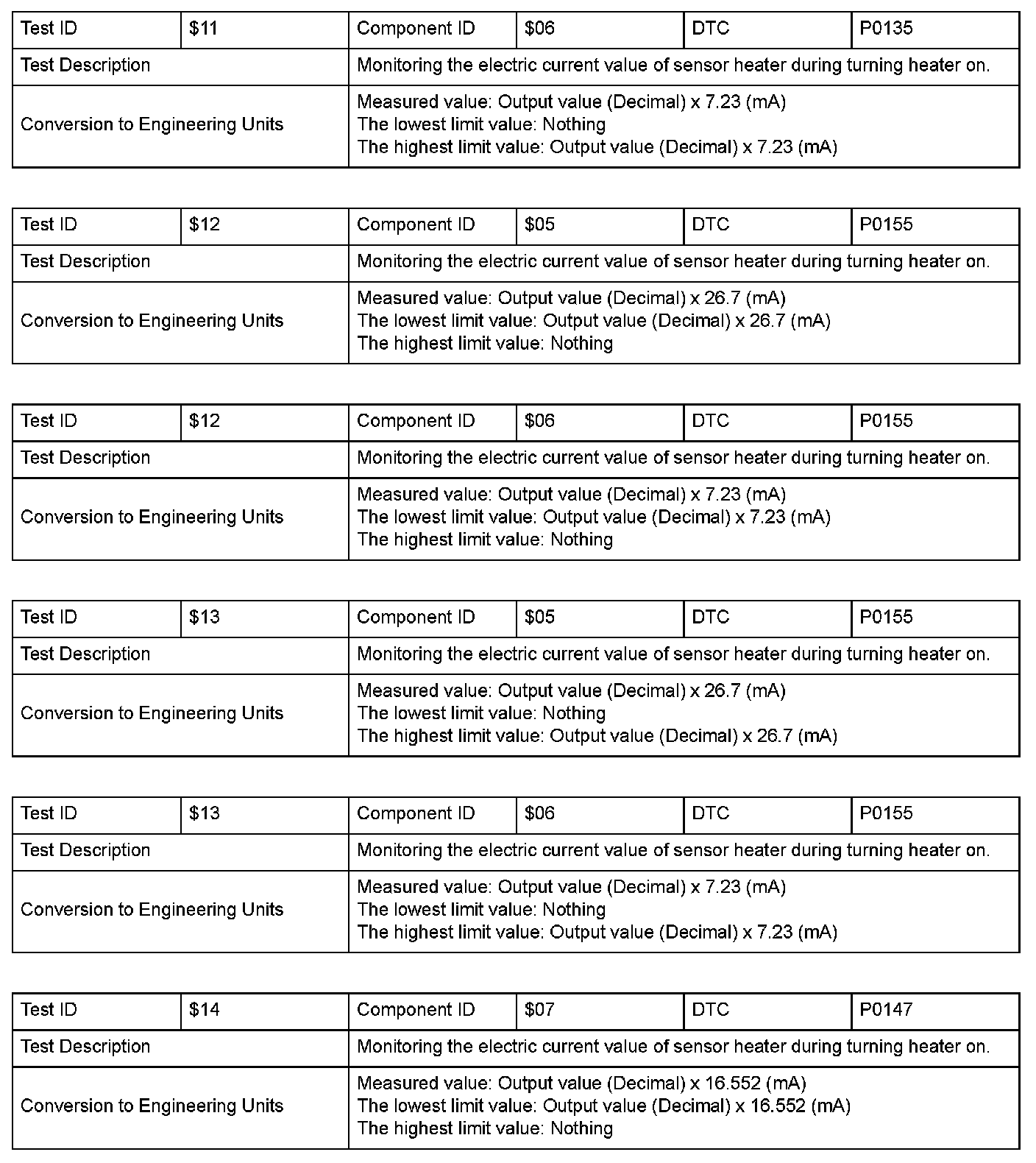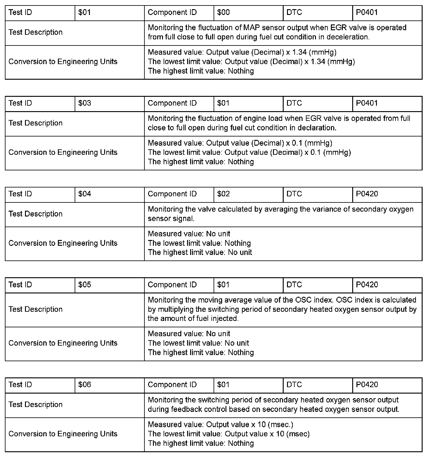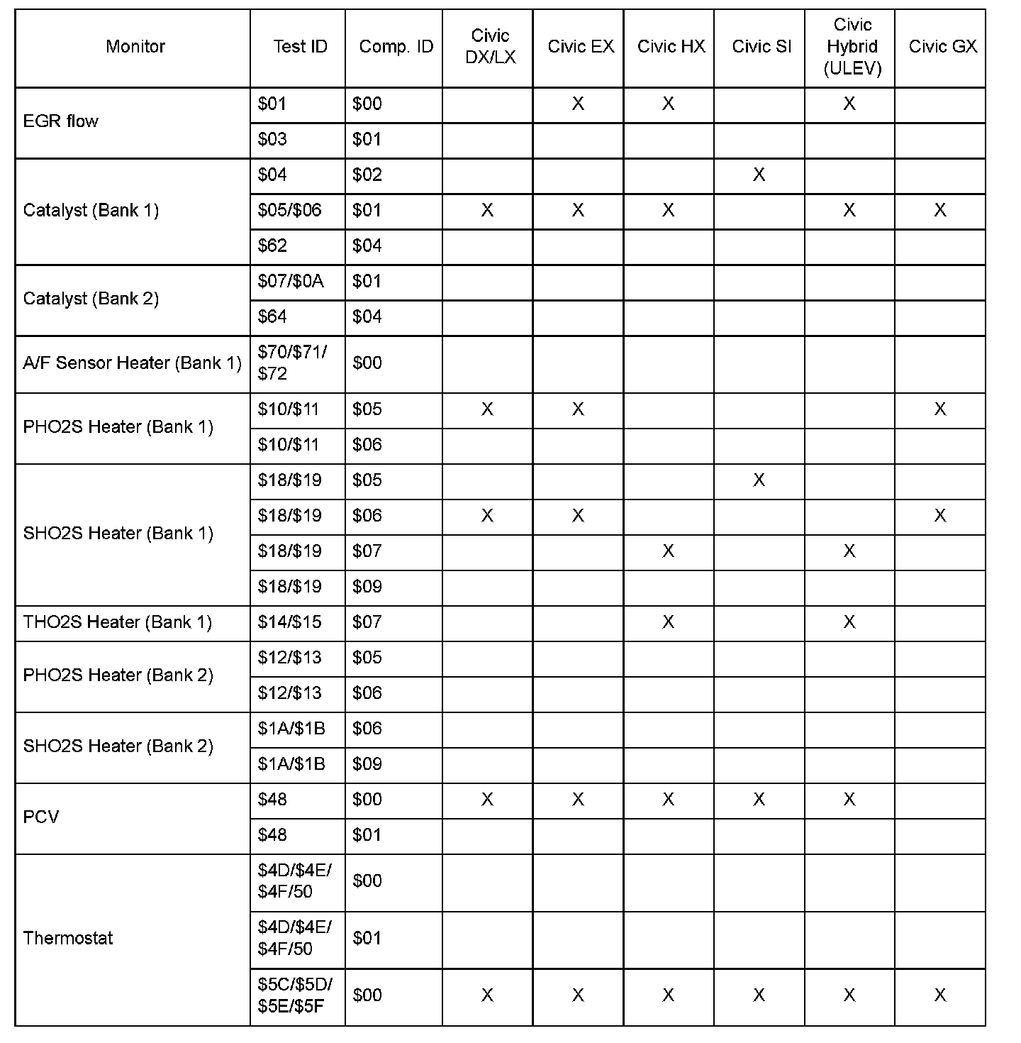 SAE J1979 Mode $06 Test Information: All 2003 Hondas