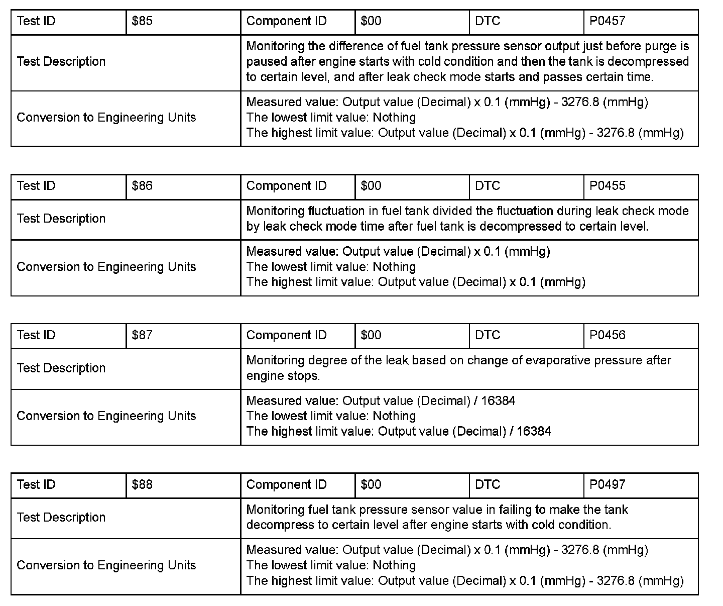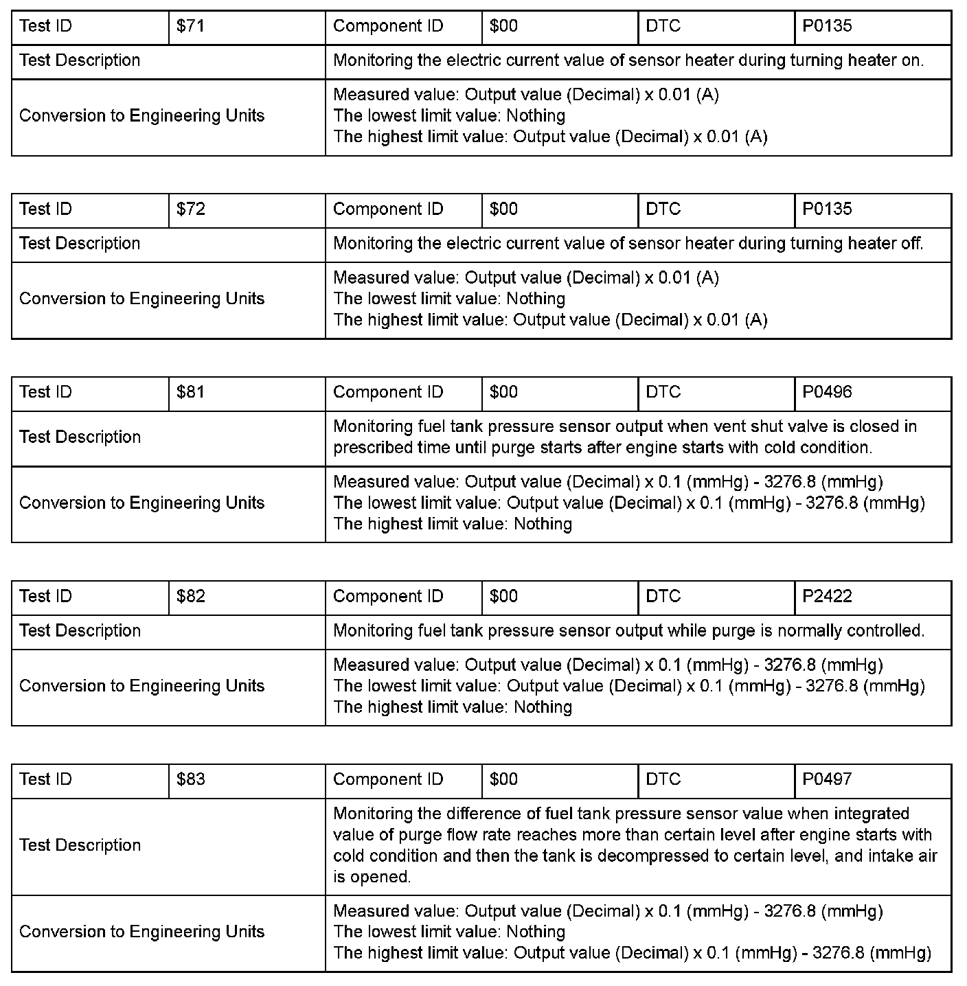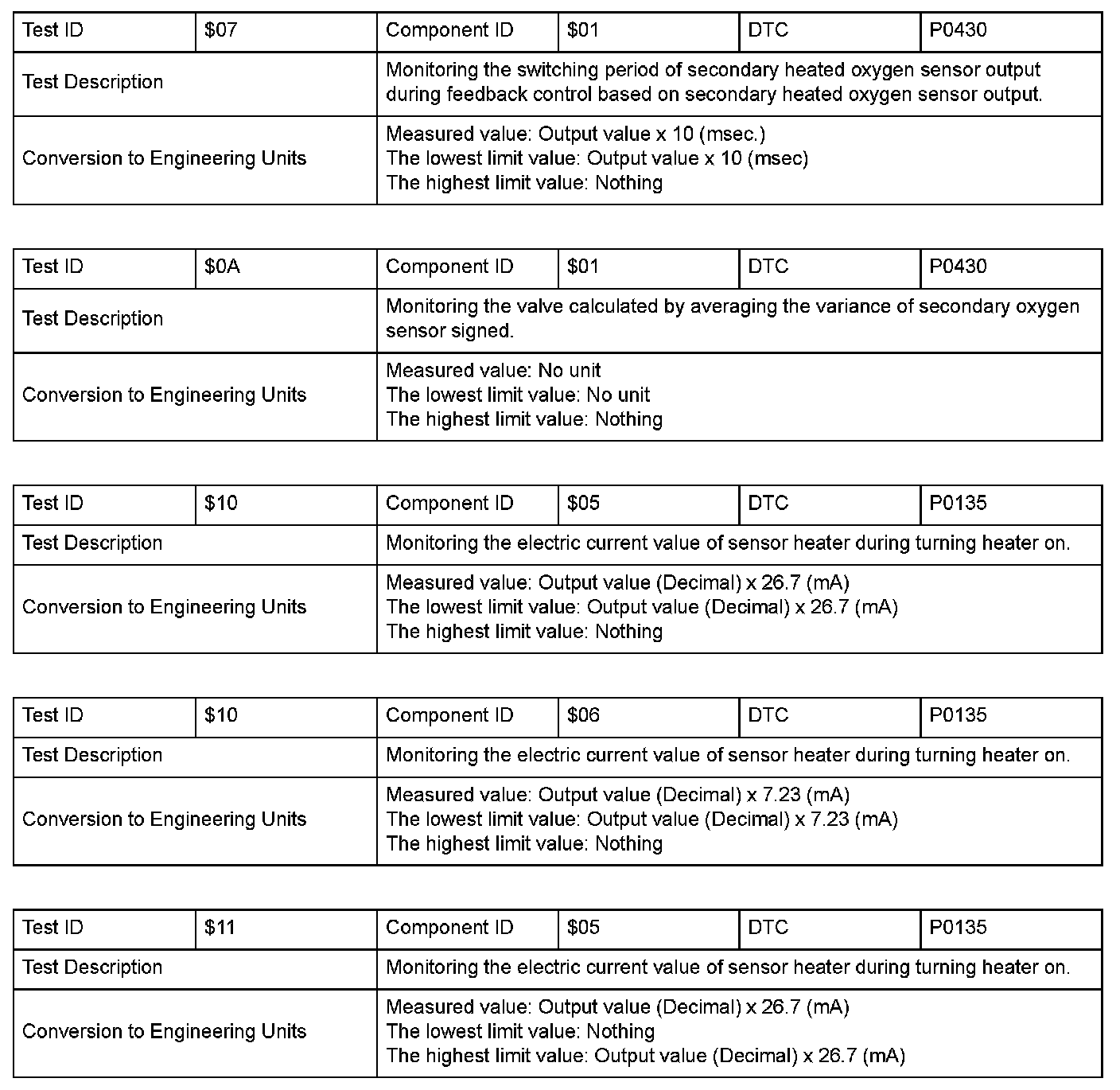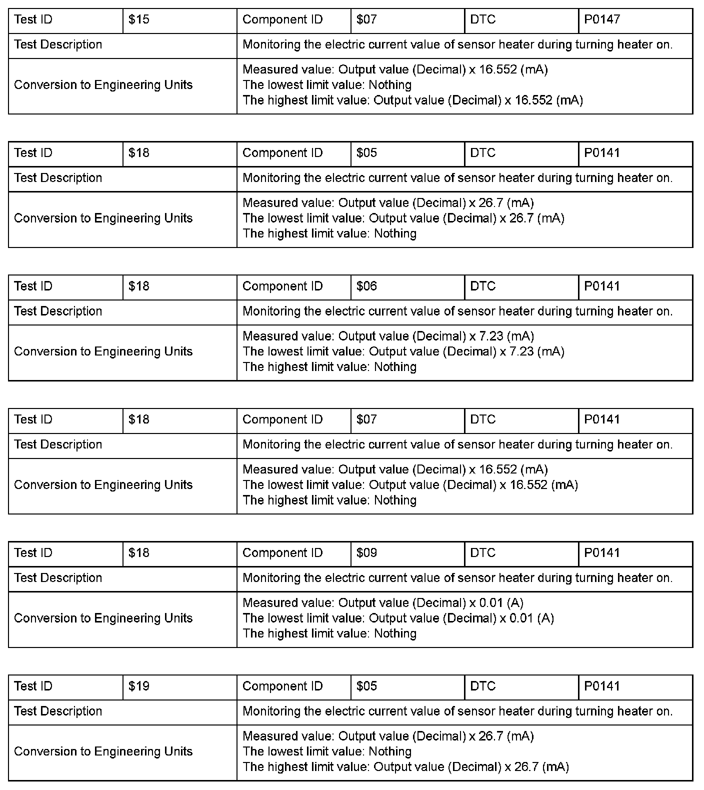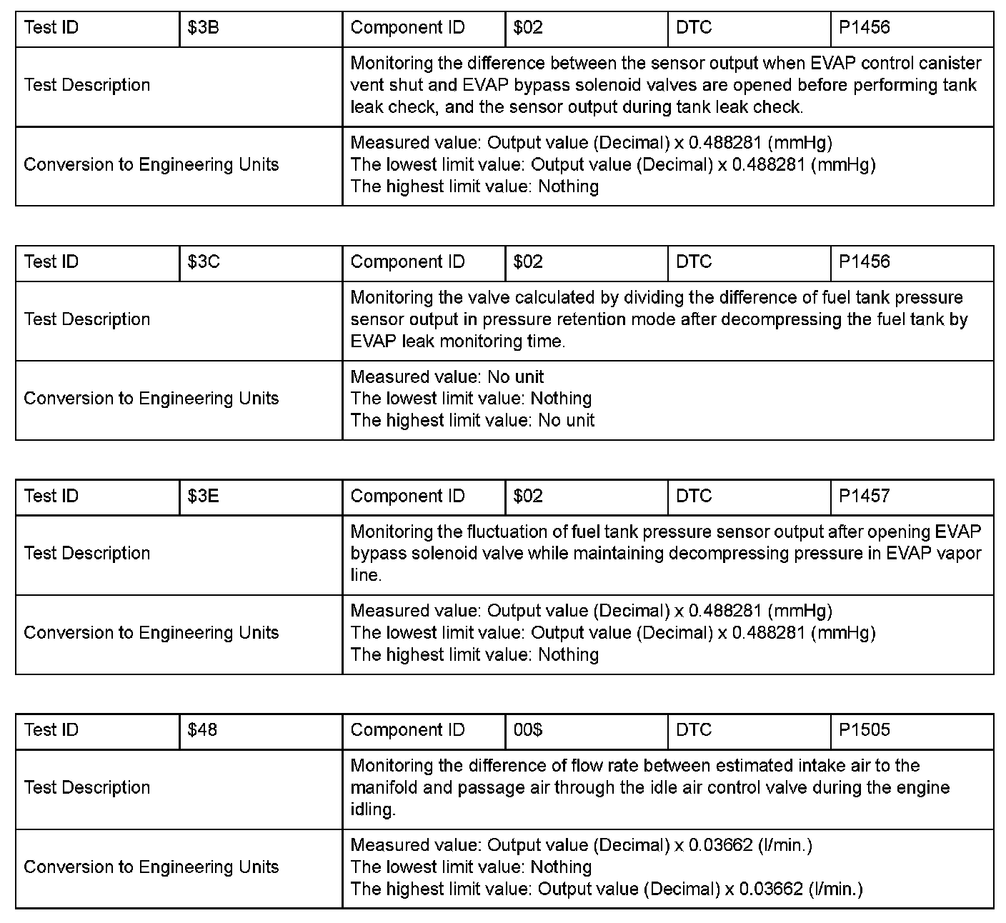 SAE J1979 Mode $06 Test Information: All 2003 Hondas