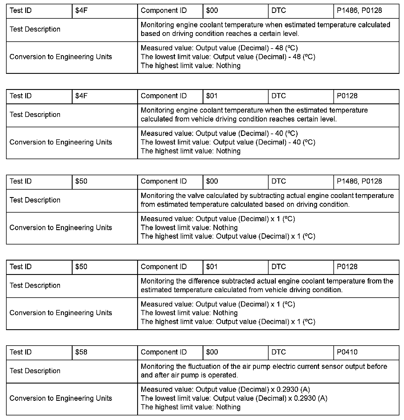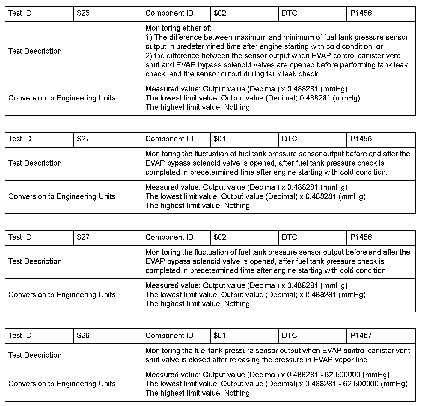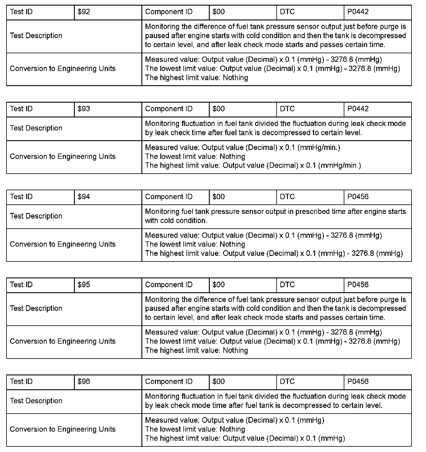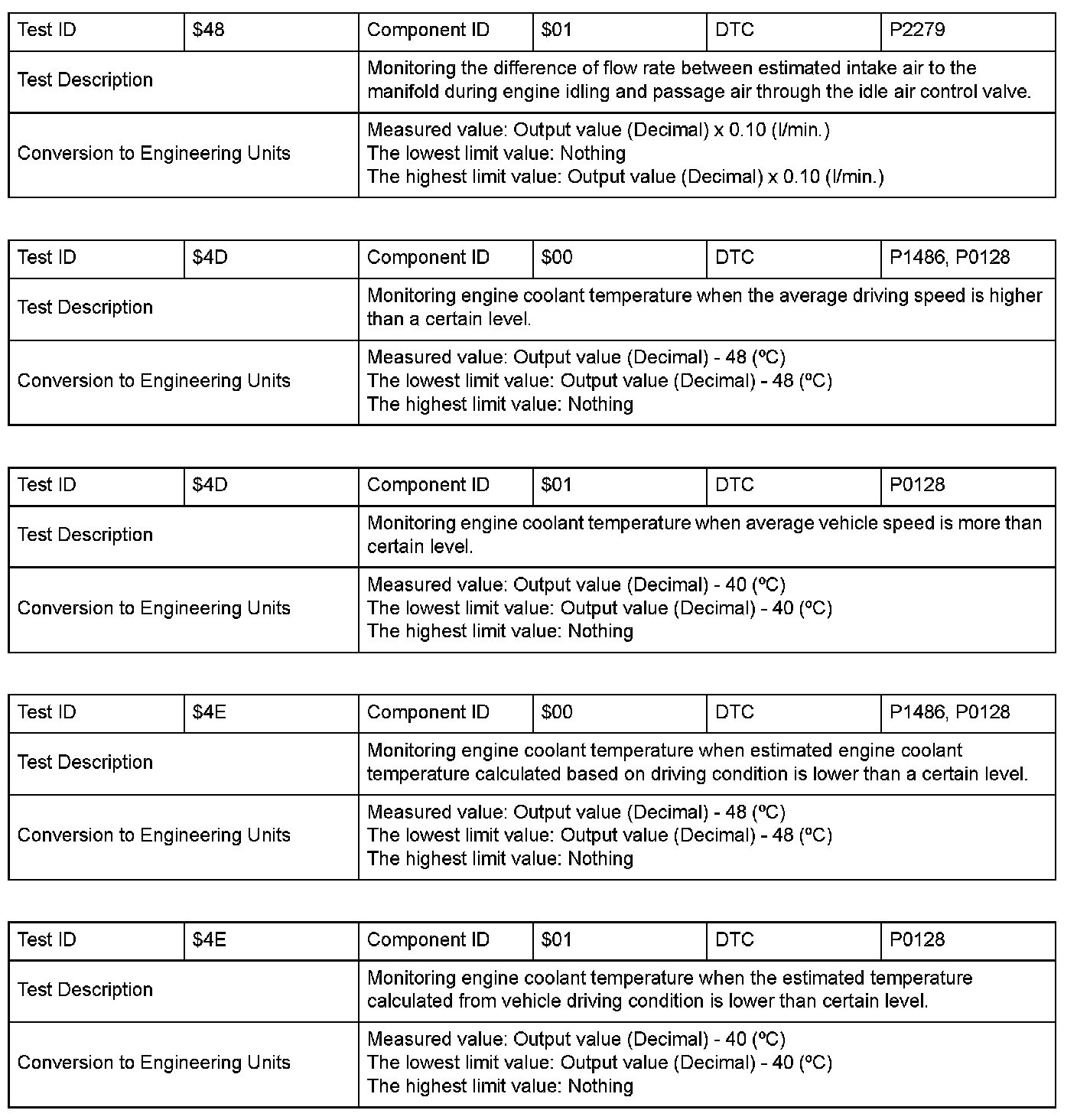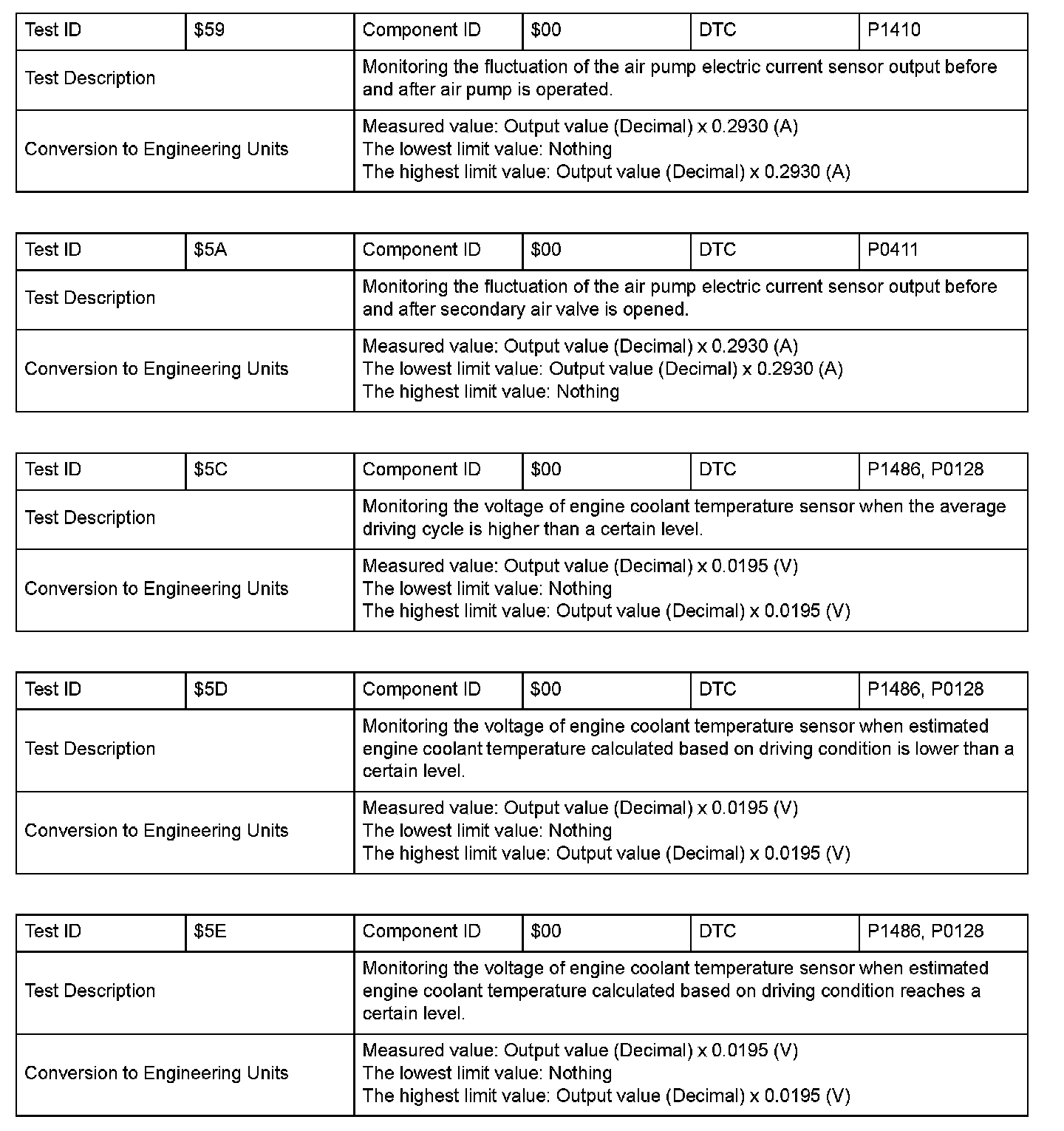 SAE J1979 Mode $06 Test Information: All 2003 Hondas