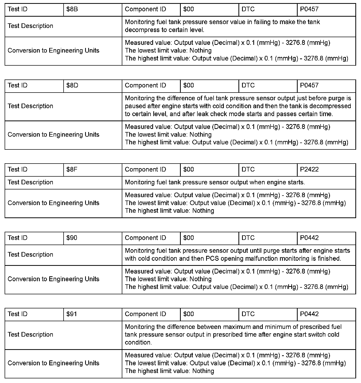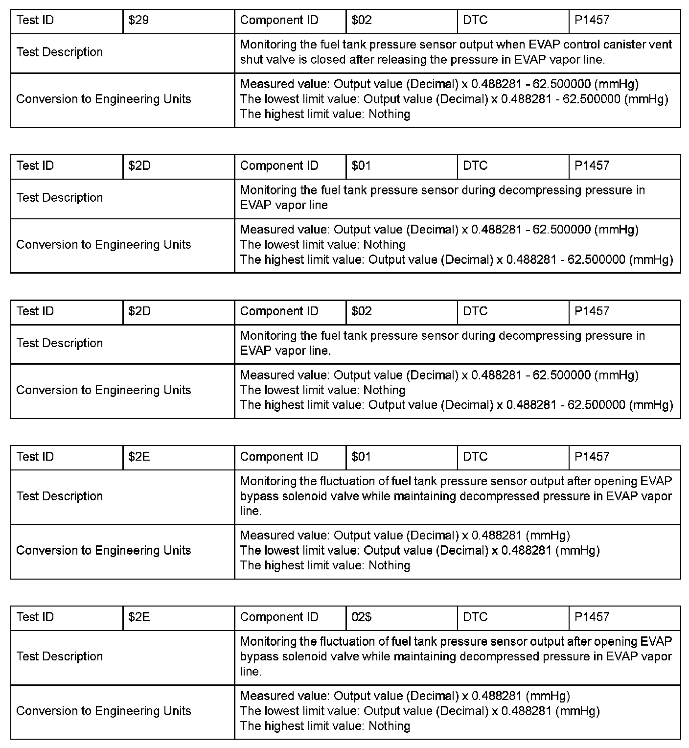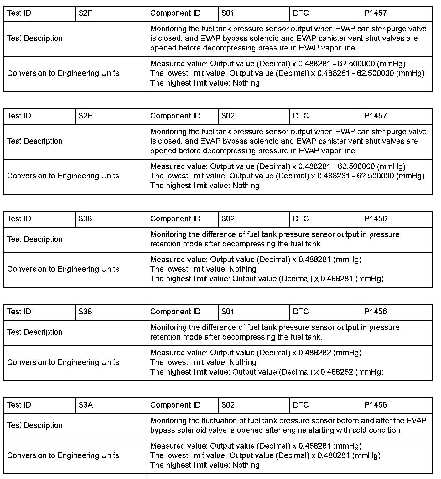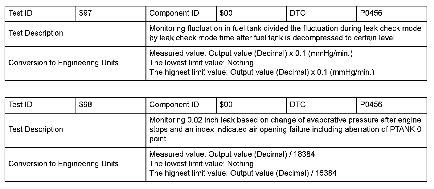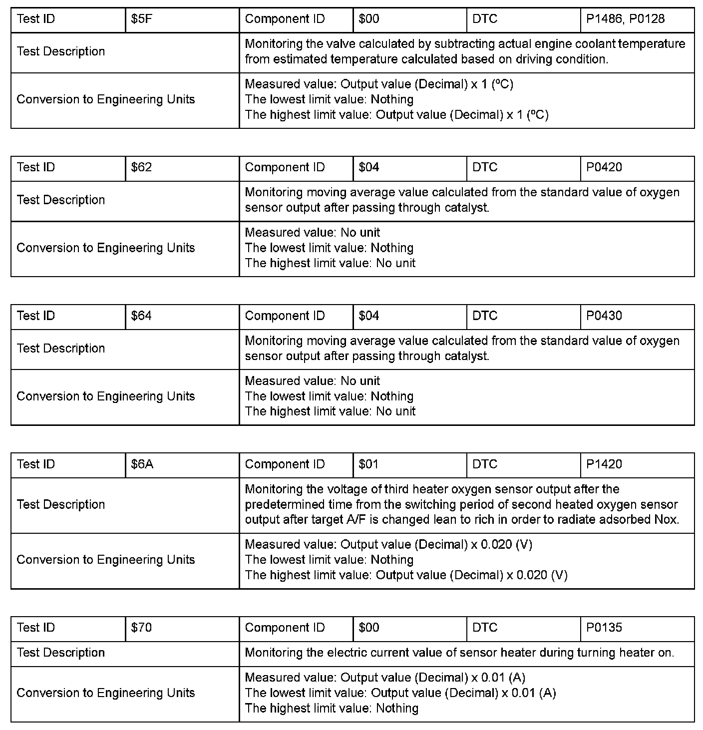 SAE J1979 Mode $06 Test Information: All 2003 Hondas