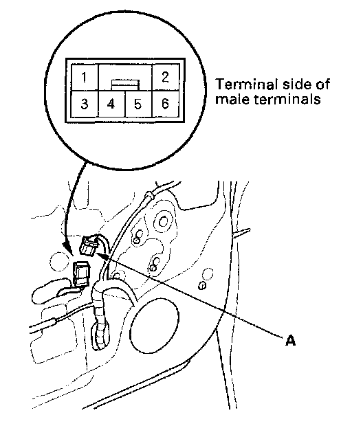 2. Disconnect the 6P connector (A) from the driver's window motor.