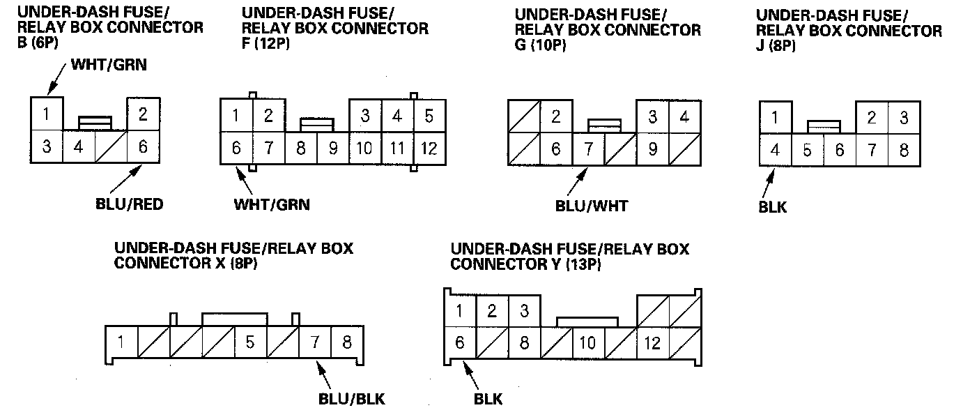 3. Disconnect the under-dash fuse/relay box connectors B, F, G, J, X and Y.