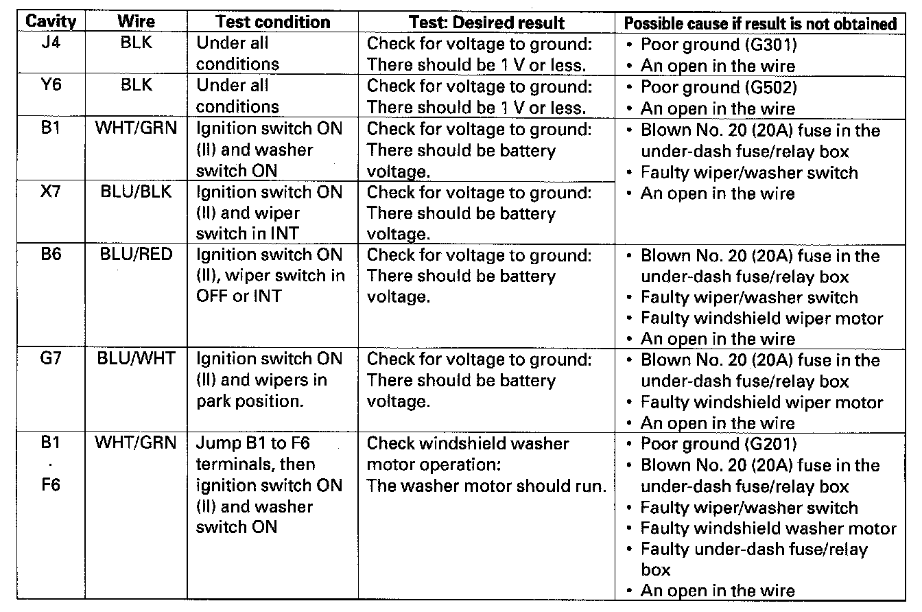 Windshield Washer Control Module: Testing and Inspection