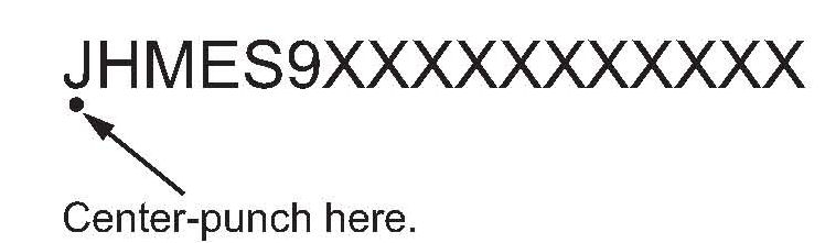 2. Center-punch a completion mark below the first character of the engine compartment VIN: