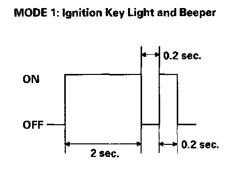 The ignition key light and beeper will not blink/deep again after the mode 1 indication.