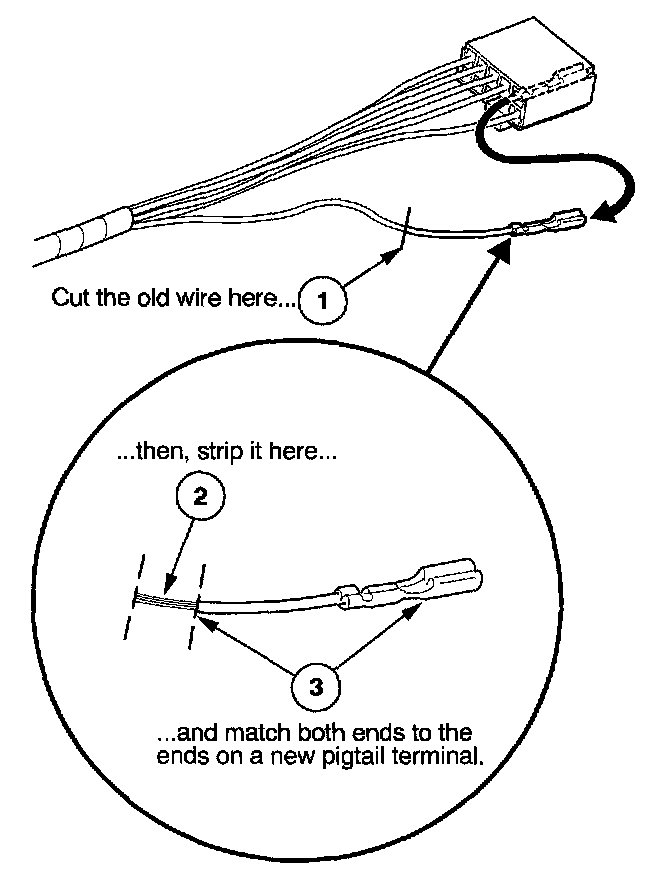 Pigtail terminals (short pieces of wire with a factory crimped terminal) are used when the wire is too short or when access to the connector is too restricted to make a terminal repair.NOTE: To replace just a connector terminal, go to How to Replace Connector Terminals.