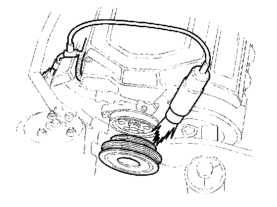 6. Aim the light toward the pointer (A) on the timing belt cover. Check the ignition timing under a no load conditions: headlights, blower fan, rear window defogger, and air conditioner are not operating. If the ignition timing differs from the specification given, check the cam timing, and the top dead center (TDC) and crankshaft position (CKP) sensors. If necessary, substitute a known-good powertrain control module (PCM) and recheck.