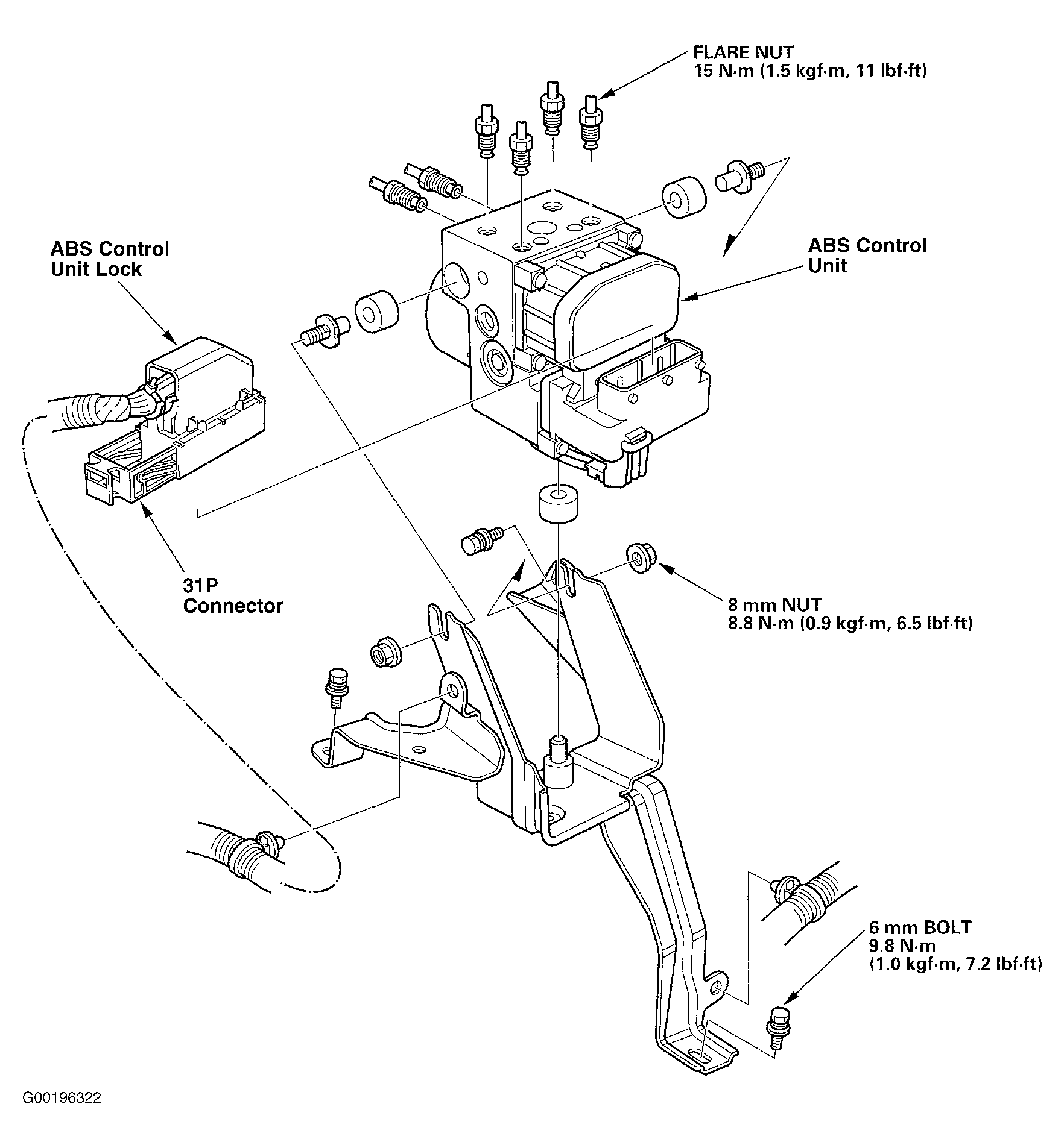 - To install, reverse removal procedure. Bleed the brake system, starting with the front wheels. Connect the HDS, and do the solenoid function test for each wheel. Bleed the brake system again, starting with the front wheels. Start the engine, and check that the ABS indicator and brake system indicator go off. Test drive the vehicle and check that the ABS indicator and brake system indicator do not come on.