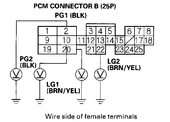 - An open in the wire(s) between the PGM-FI main relay and PCM connector terminals B1 and B9.