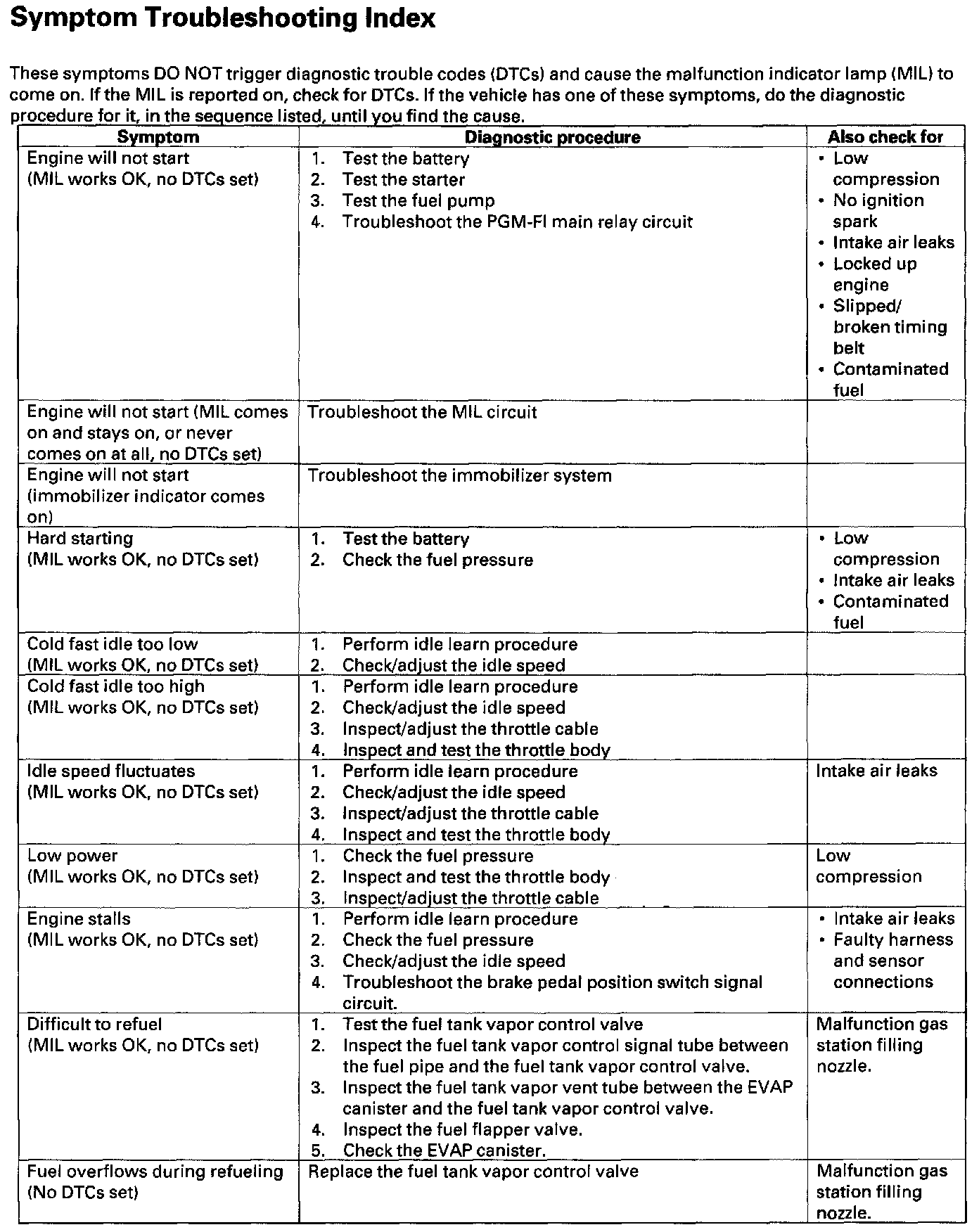 Symptom Troubleshooting Index: