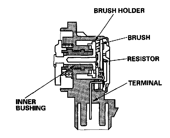 The TP sensor is a potentiometer connected to the throttle valve shaft. As the throttle position changes, the sensor varies the signal voltage to the PCM. The TP sensor is not replaceable apart from the throttle body.