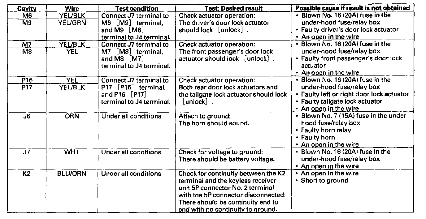 Home >> Honda >> 2004 >> CR-V 2WD L4-2.4L >> Repair and Diagnosis >> Body and Frame >> Locks >> Keyless Entry >> Keyless Entry Module >> Testing and Inspection