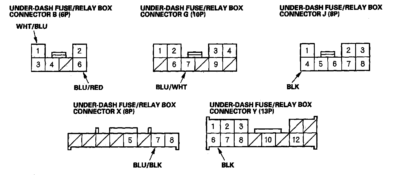 3. Disconnect the under-dash fuse/relay box connectors B, G, J, X and Y.