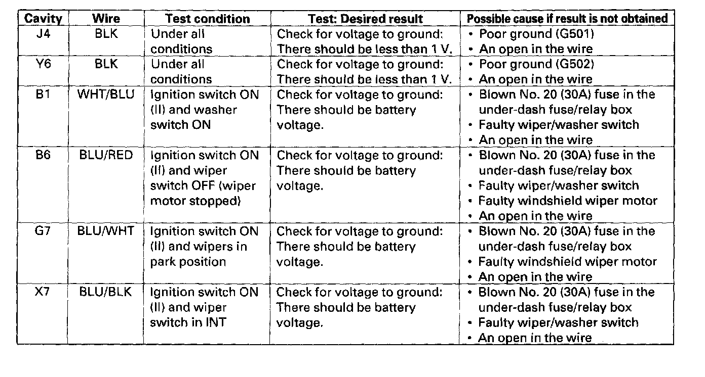 Home >> Honda >> 2004 >> Civic Si L4-2.0L >> Repair and Diagnosis >> Wiper and Washer Systems >> Wiper Control Module >> Testing and Inspection >> Control Unit Input Test