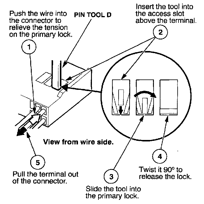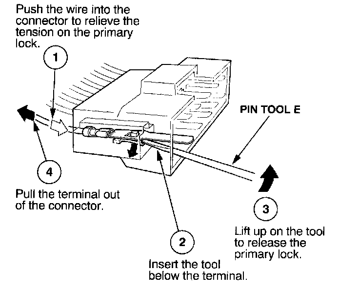 Before you begin, inspect the wire you are about to repair for damage and length. Make sure the wire will be long enough to make a terminal repair without stretching it when you reinstall the terminal in the connector. If the wire is too short, or if access to the connector is too restricted to make a terminal repair, you may need to install a pigtail terminal (a short length of wire with a factory-crimped terminal on it). Refer to HOW TO INSTALL PIGTAIL TERMINALS.