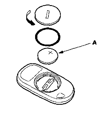3. Replace the transmitter battery (A) with a new one, and try to lock and unlock the doors with the transmitter by pressing the lock or unlock button five or six times.