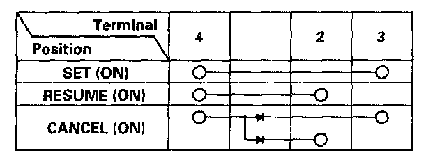 - If there is continuity, and it matches the table, but switch failure occurred on the cruise control actuator input test, check and repair the wire harness on the switch circuit.