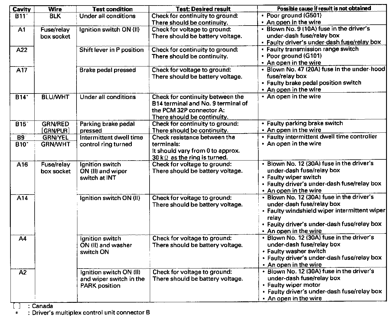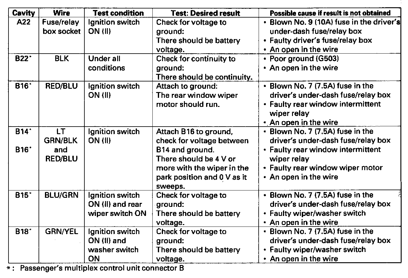 1. Before testing the wiper/washer control functions, troubleshoot the multiplex control system. Multiplex Control System Troubleshooting