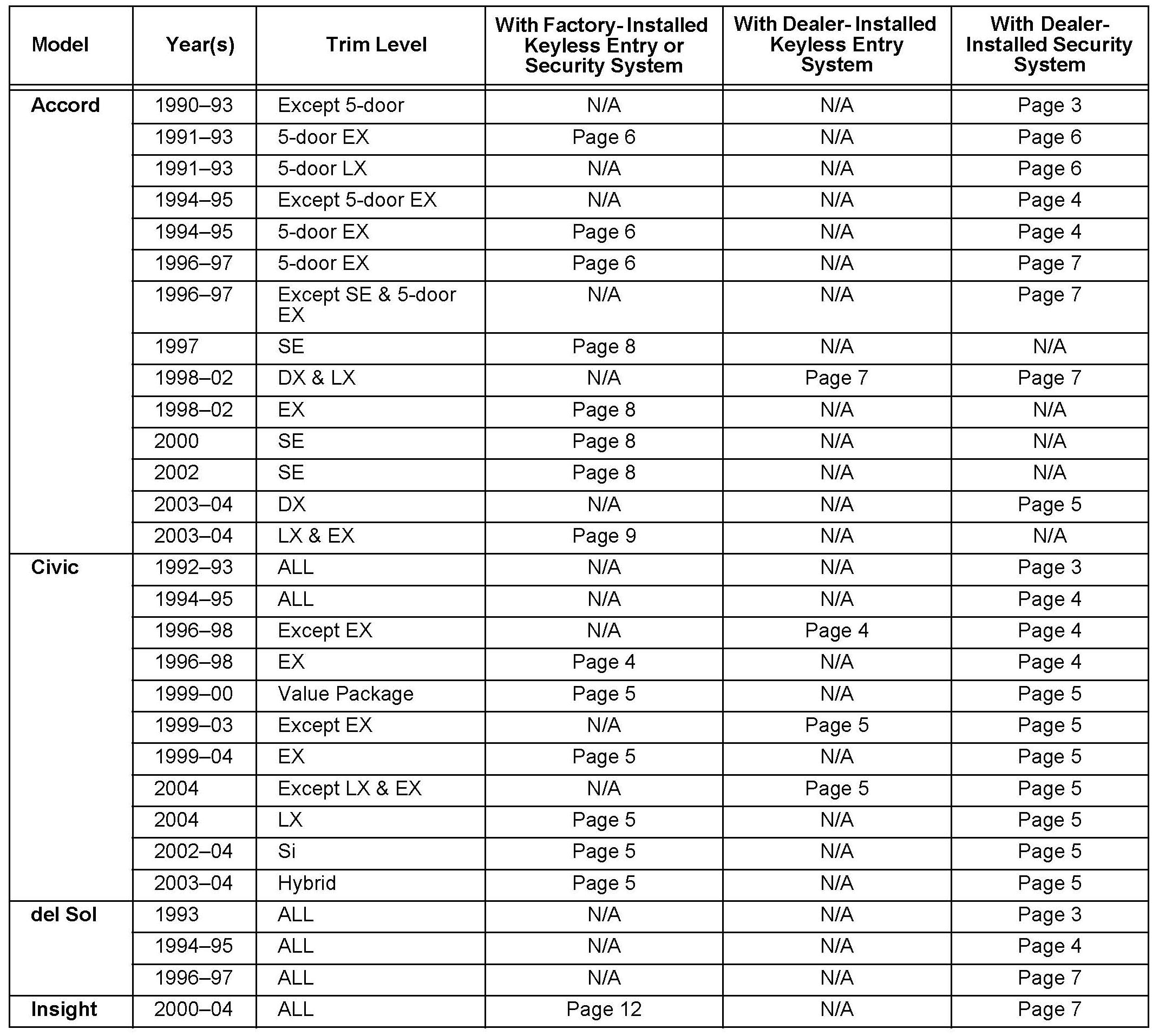 Home >> Honda >> 2004 >> S2000 L4-2.2L >> Repair and Diagnosis >> Body and Frame >> Locks >> Keyless Entry >> Keyless Entry Transmitter >> Keyless Entry Transmitter Battery >> Technical Service Bulletins >> Keyless Entry - Keyless Remote Transmitter Information